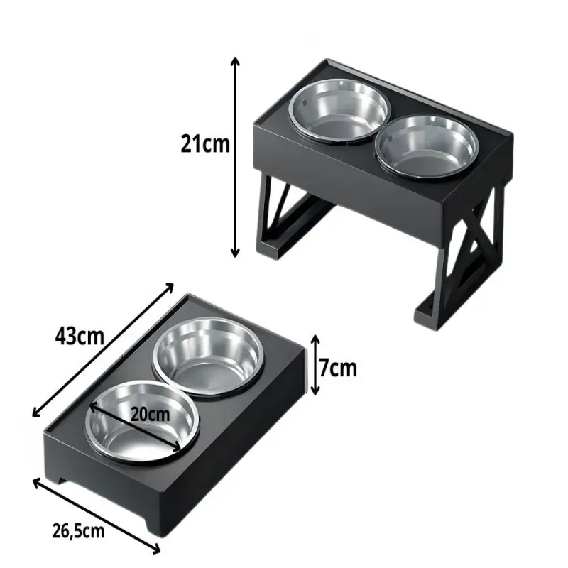 Zestaw wyposażony jest w dwie wyjmowane miski ze stali nierdzewnej. Jedna może służyć na karmę suchą lub mokrą, druga na wodę. Dzięki temu pupil ma wszystko w jednym miejscu.