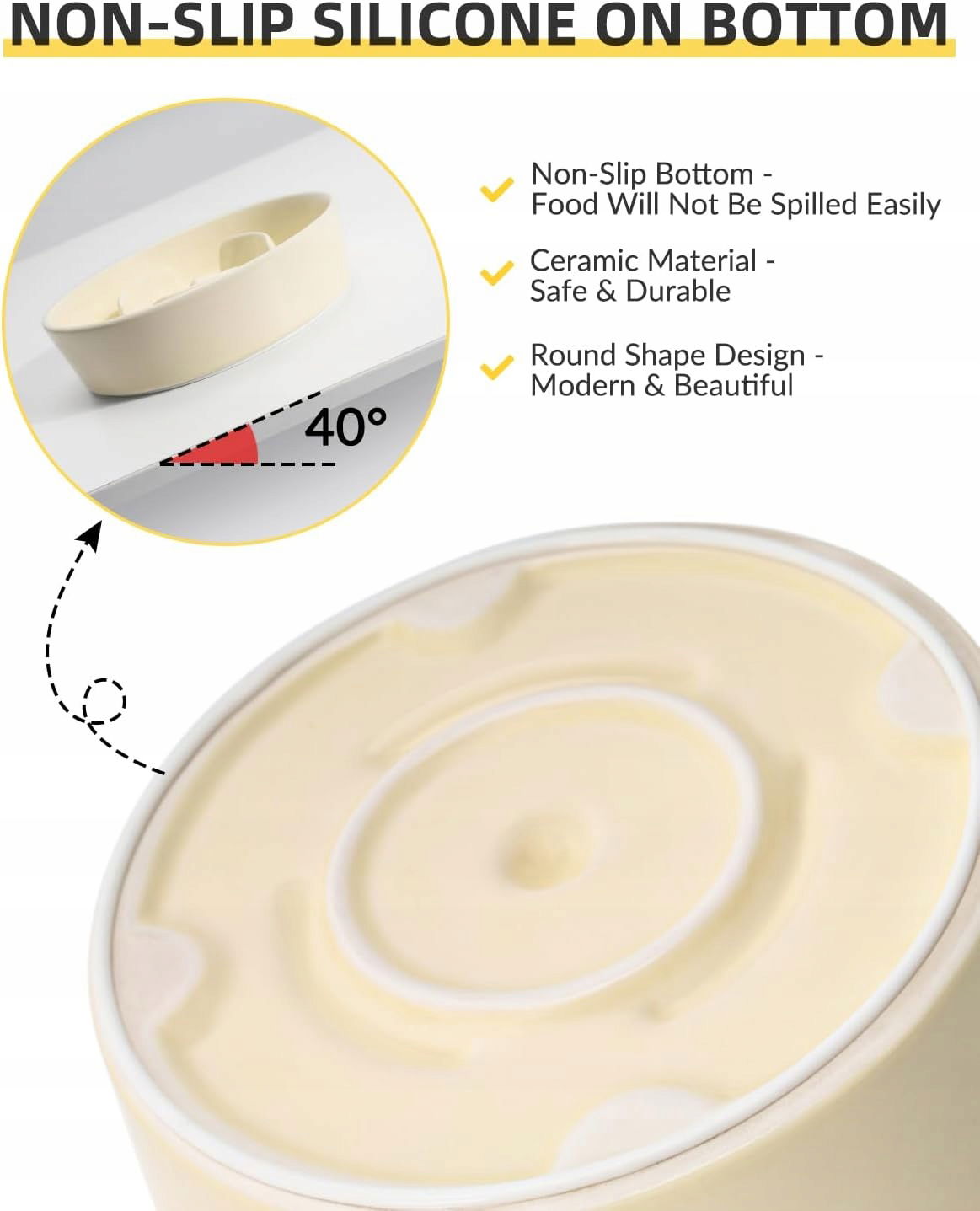 - Ceramiczne miski dla psów spowalniające jedzenie: Nasze ceramiczne miski dla psów pozwalają Twojemu pupilowi jeść 10 razy wolniej niż zwykłe miski dla psów. Zapewniając wyzwanie i zabawę podczas jedzenia, oferuje zwierzętom zdrowy sposób odżywiania.