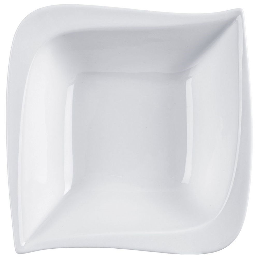 NOWOCZESNY DESIGN - Utrzymana w modnej, białej kolorystyce. Miska ma kształt nieregularnego kwadratu z delikatnie zaokrąglonymi brzegami, dzięki czemu ma elegancki wygląd. Pięknie prezentuje się na stole wraz z inną zastawą.