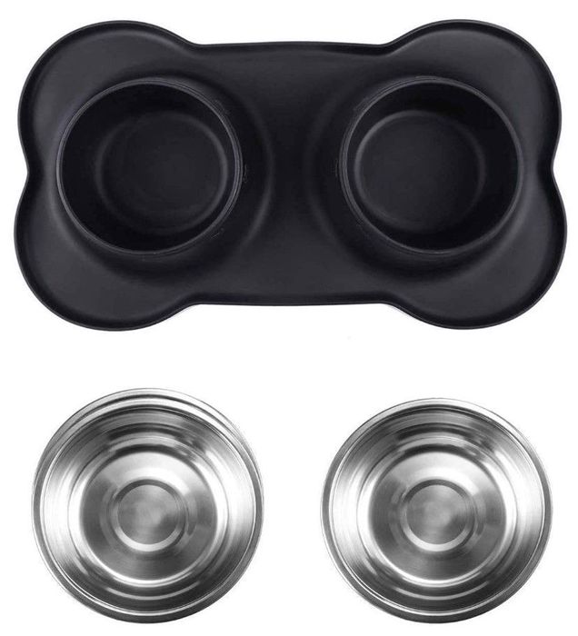Miska na karme dla psa kota podwojna 2x400ml czarn
