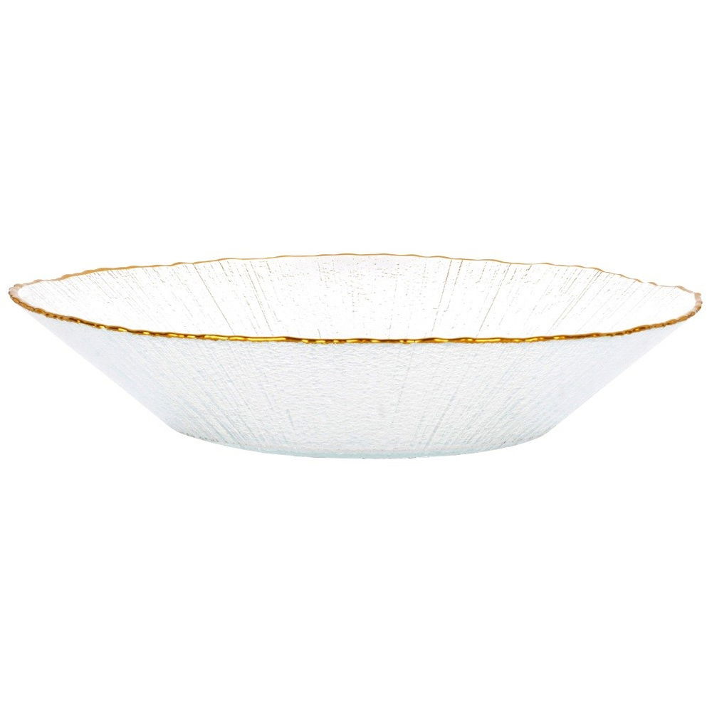 Wykonana ze szkła - Wykonana z najwyższej jakości przezroczystego szkła, które swoją strukturą imituje kryształ. Rant miski jest w kolorze złotym. Odpowiednio użytkowana posłuży długie lata.