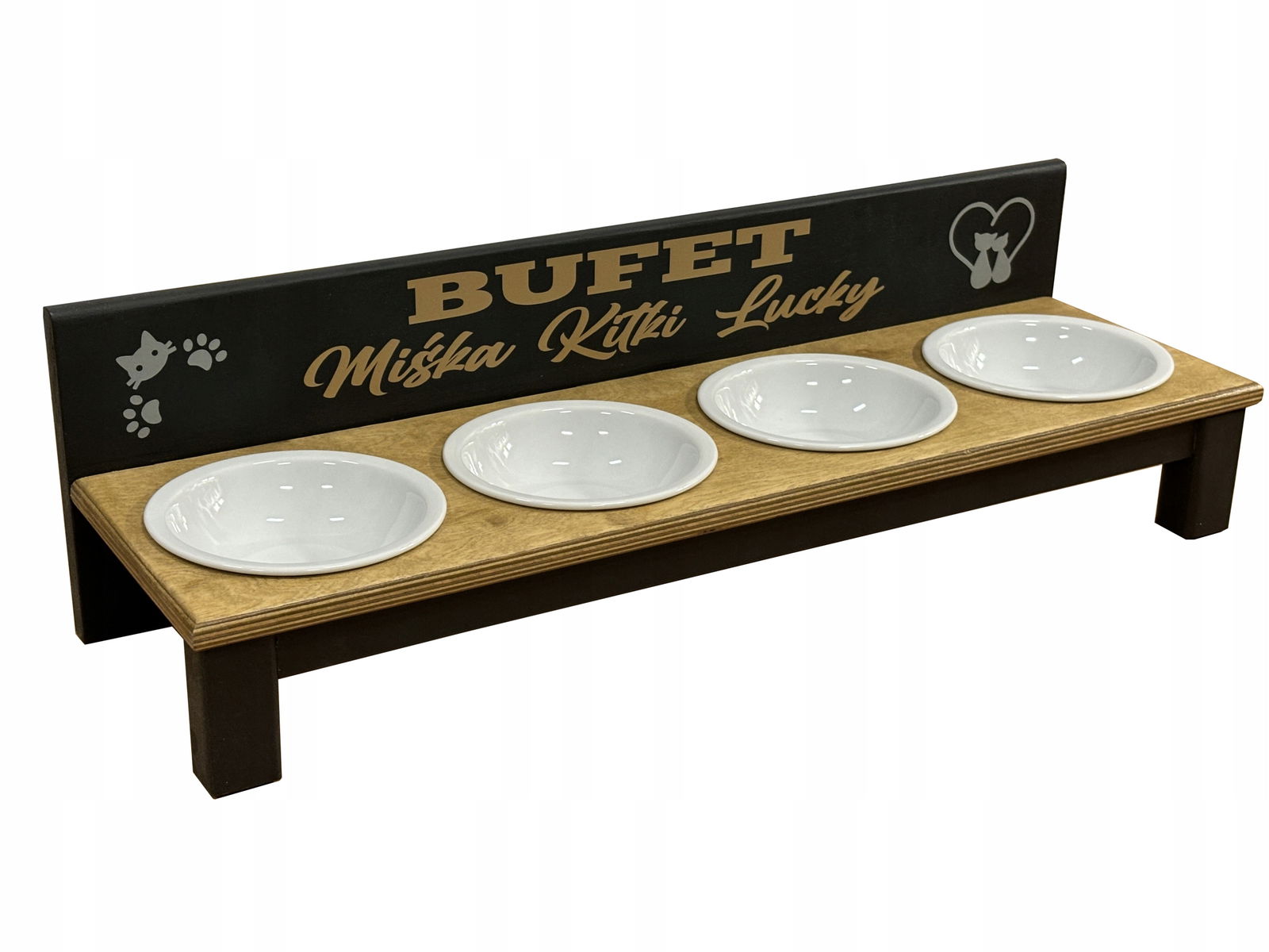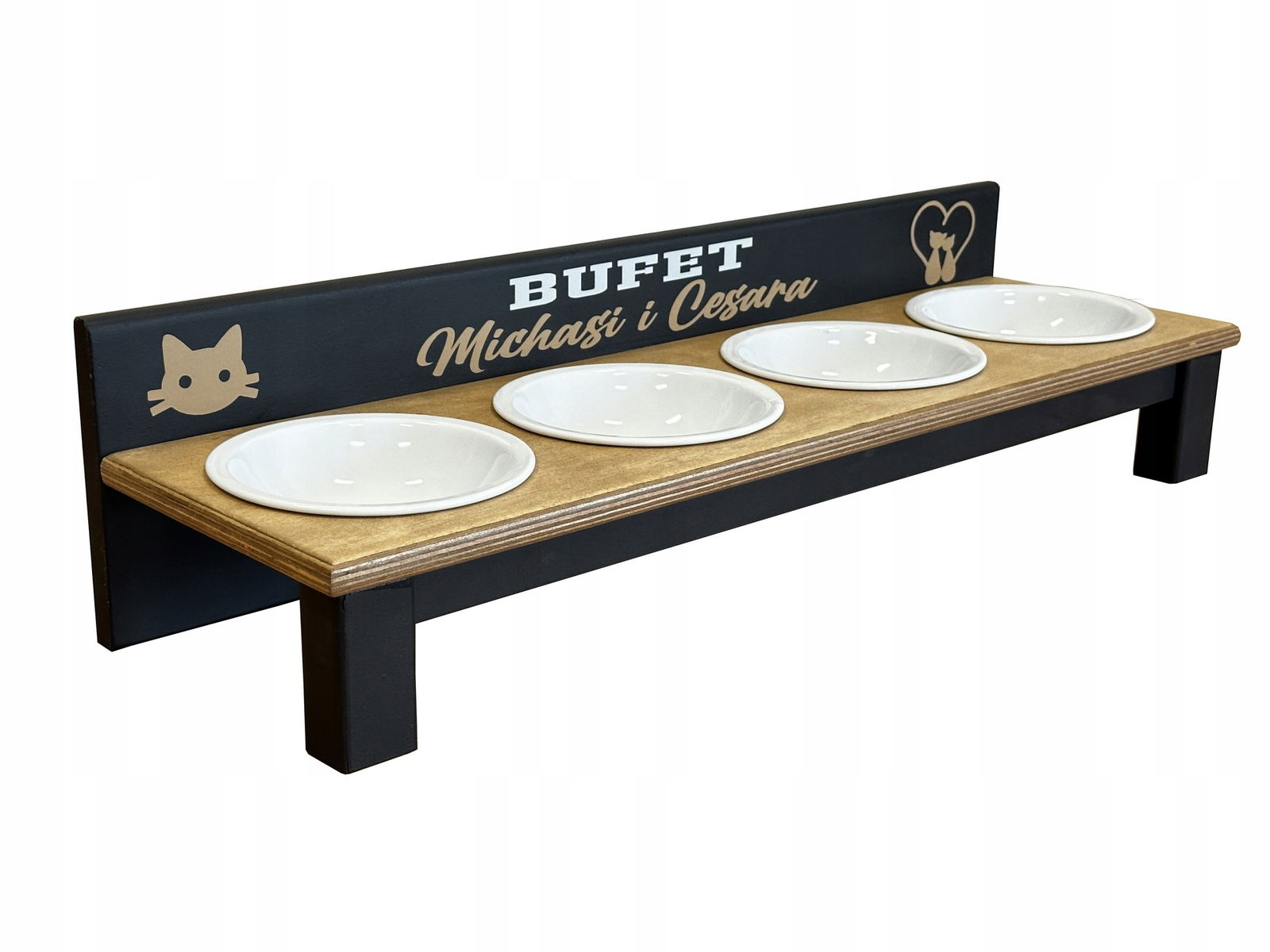 Miski ceramiczne 16 cm dla dużych ras kotów - 4 x 340 ml. Czarny + Nadruk