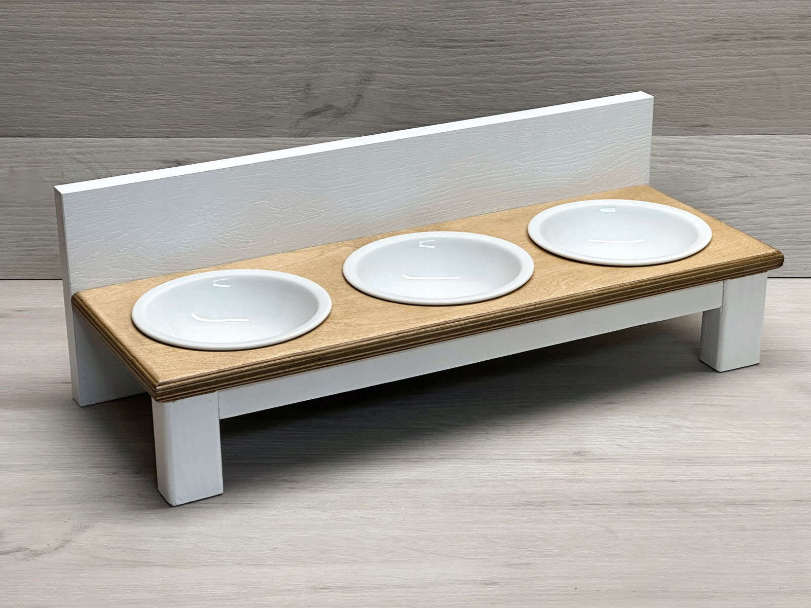 Stojak z trzema miskami ceramicznymi o średnicy 16 cm / wysokość 4.5 cm / Pojemność 340 ml.
