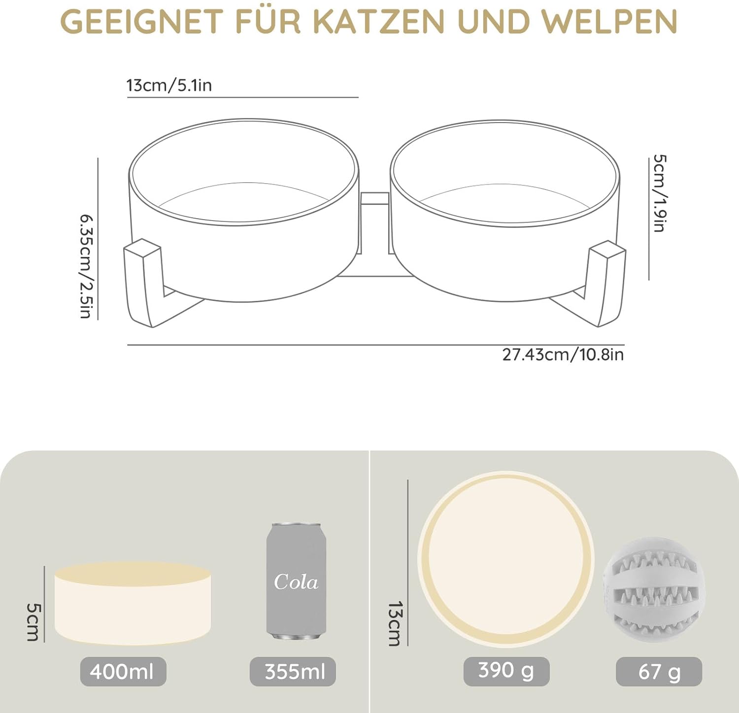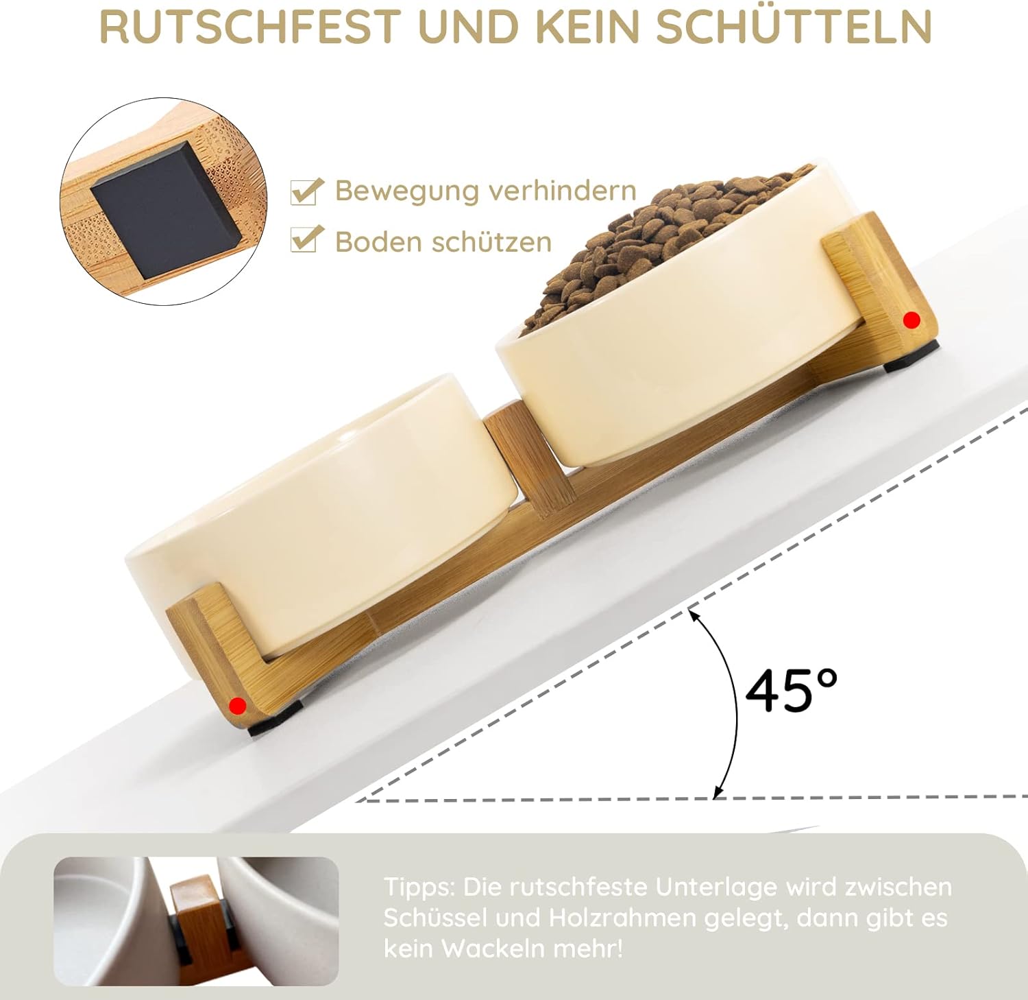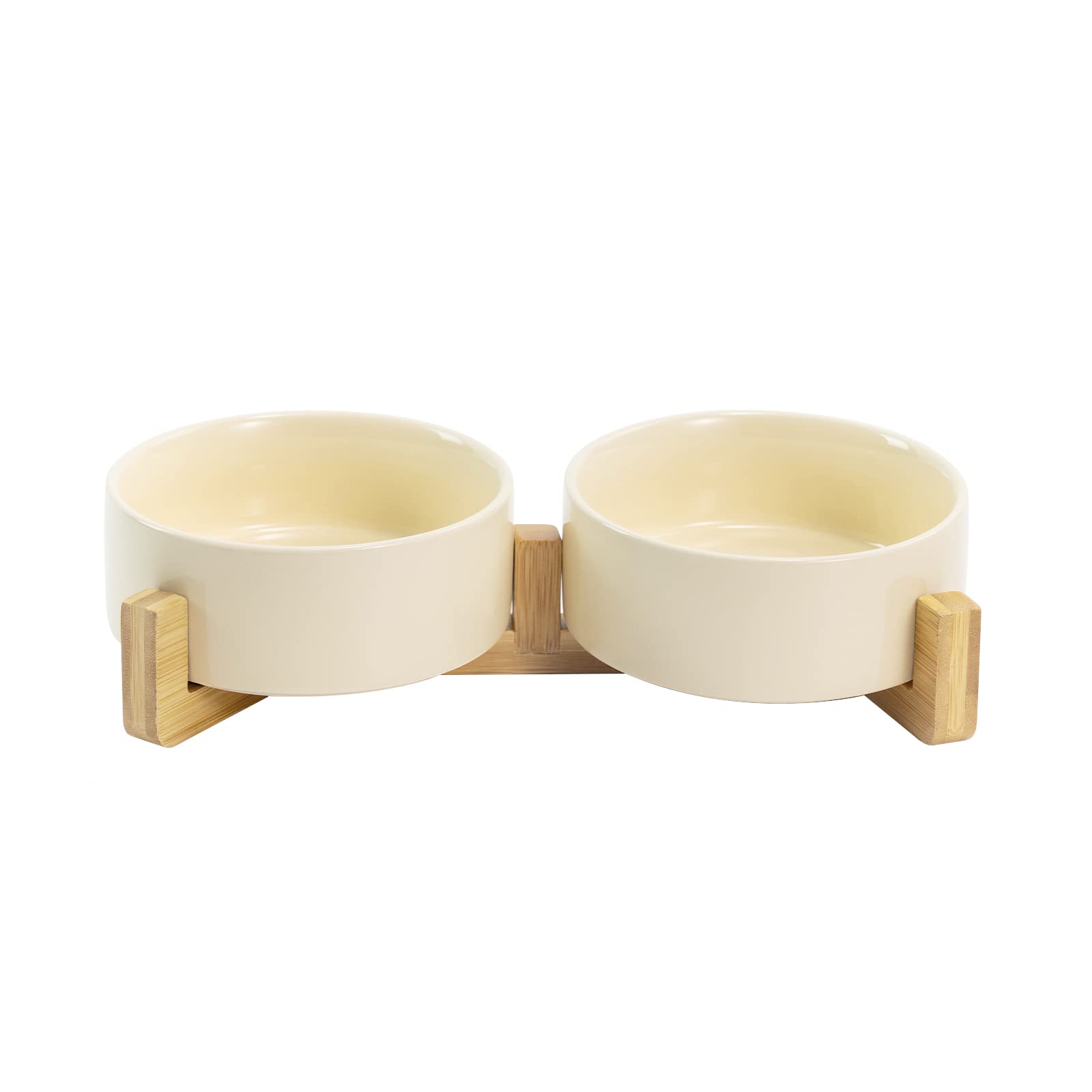 Miski dla zwierząt ceramiczne na podwyższeniu bambusowym beżowe 400 ml