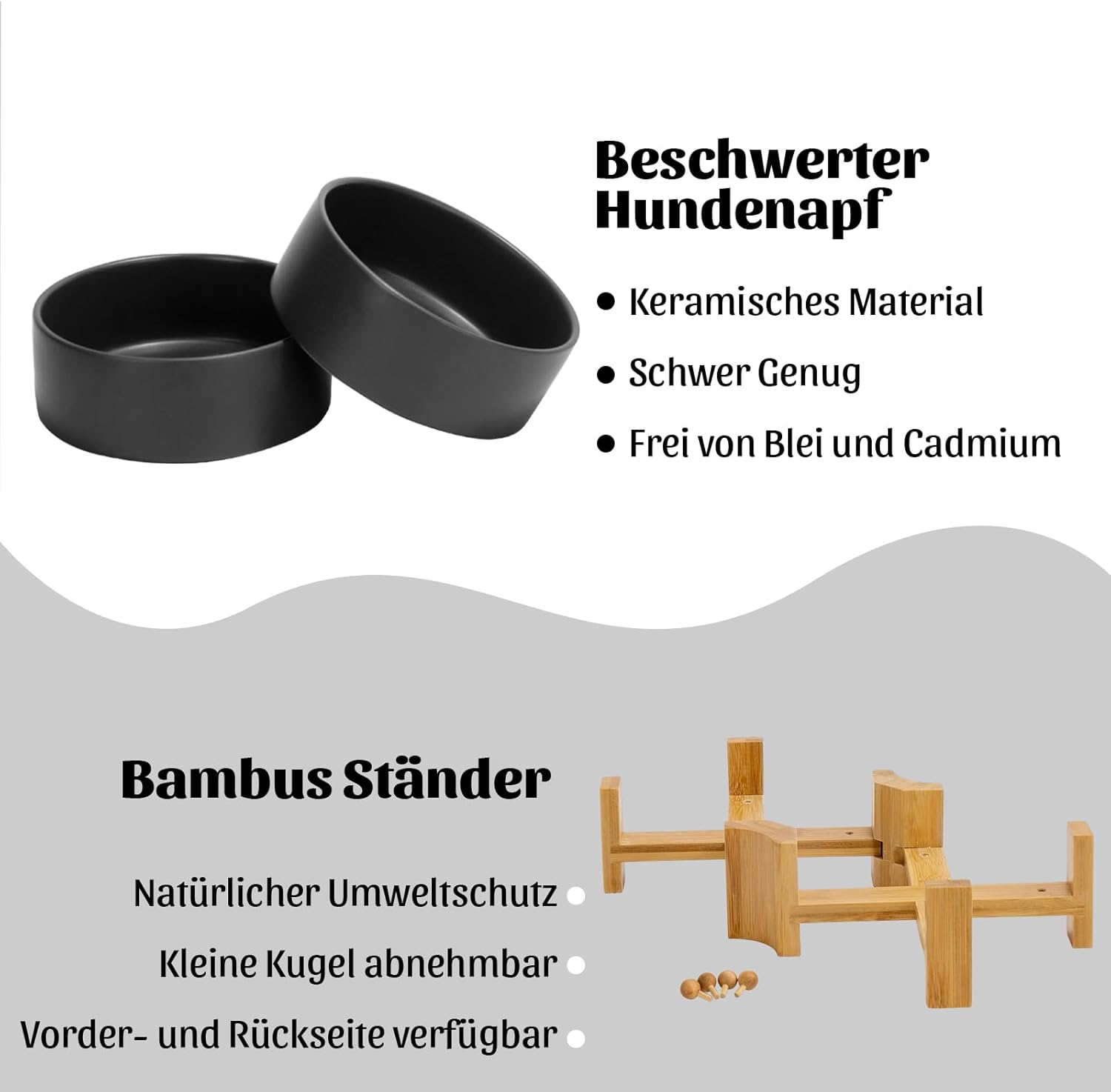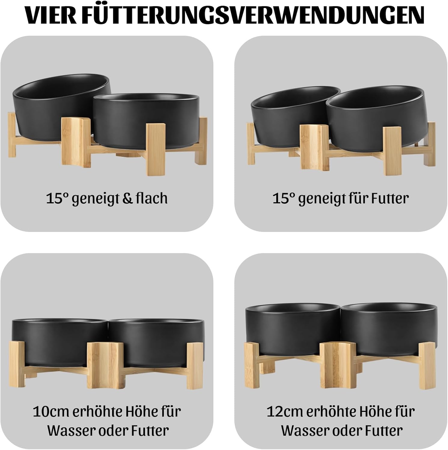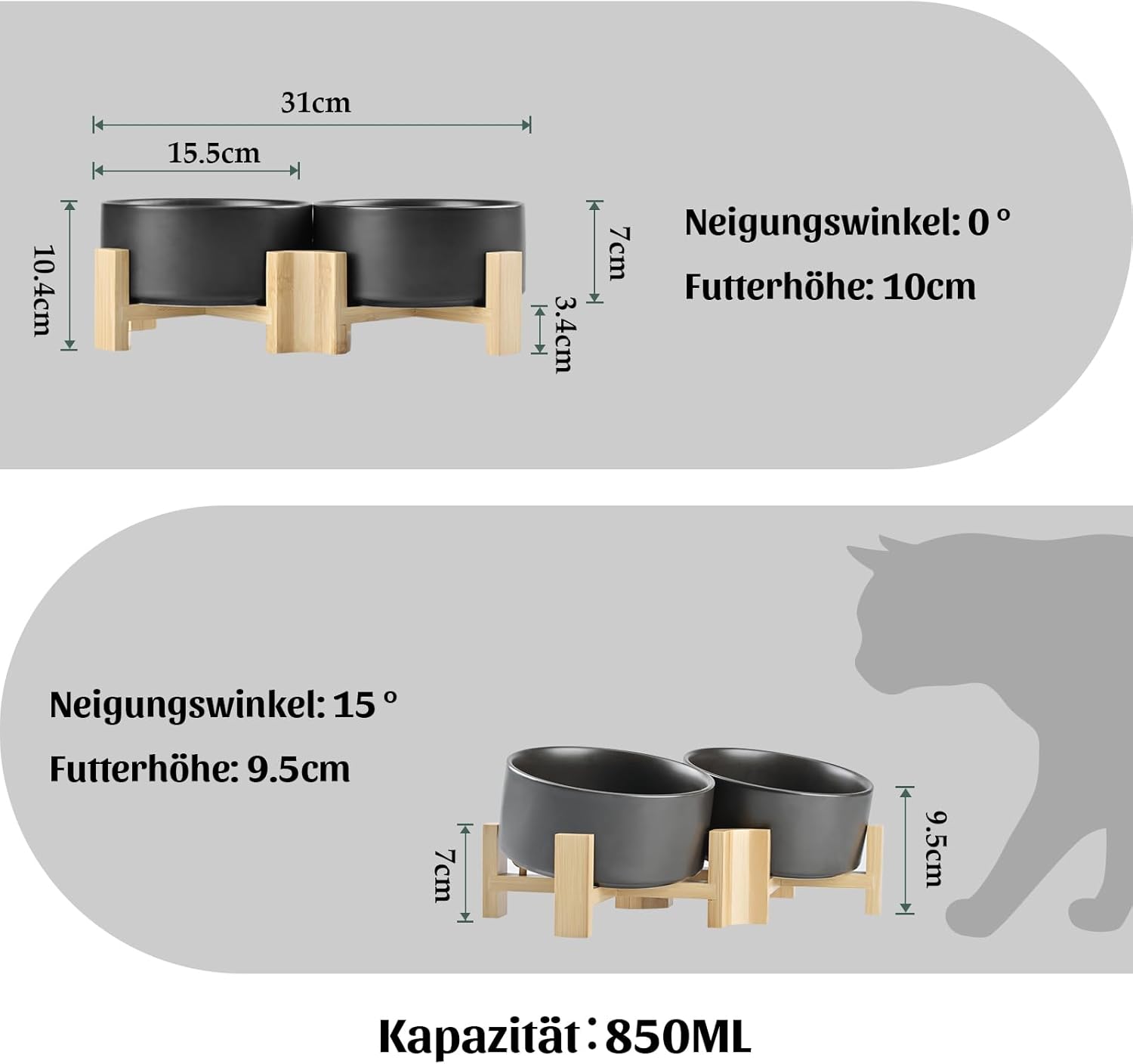 ✅ Dołączone komponenty: Ceramiczna miska dla psa uchylna o 15°, drewniany stojak