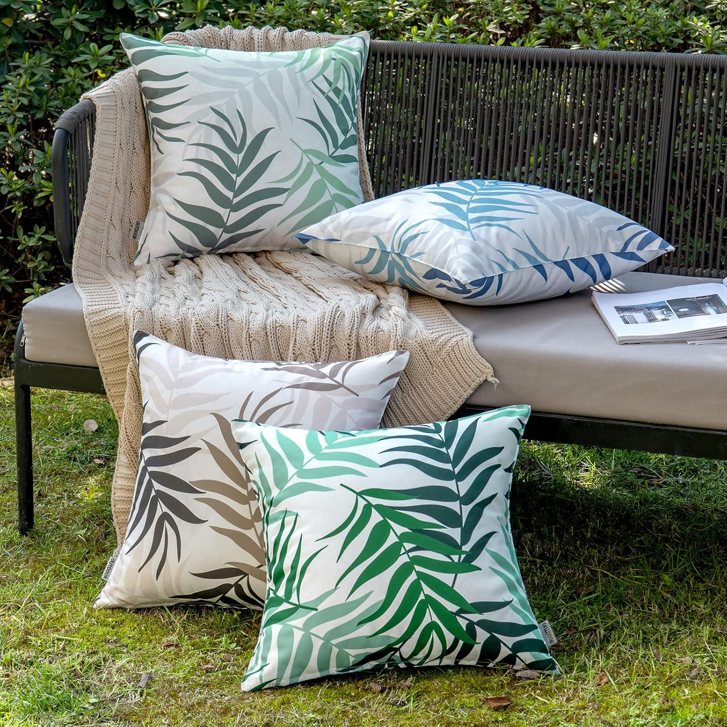 Design: Zewnętrzna poduszka dekoracyjna z wzorem liści nadaje Twojej przestrzeni zewnętrznej naturalną i świeżą nutę oraz wprowadza kolor do szarości. Nasza odporna na warunki atmosferyczne poduszka dzięki nowoczesnemu wzornictwu przyciąga wzrok w ogrodzie.