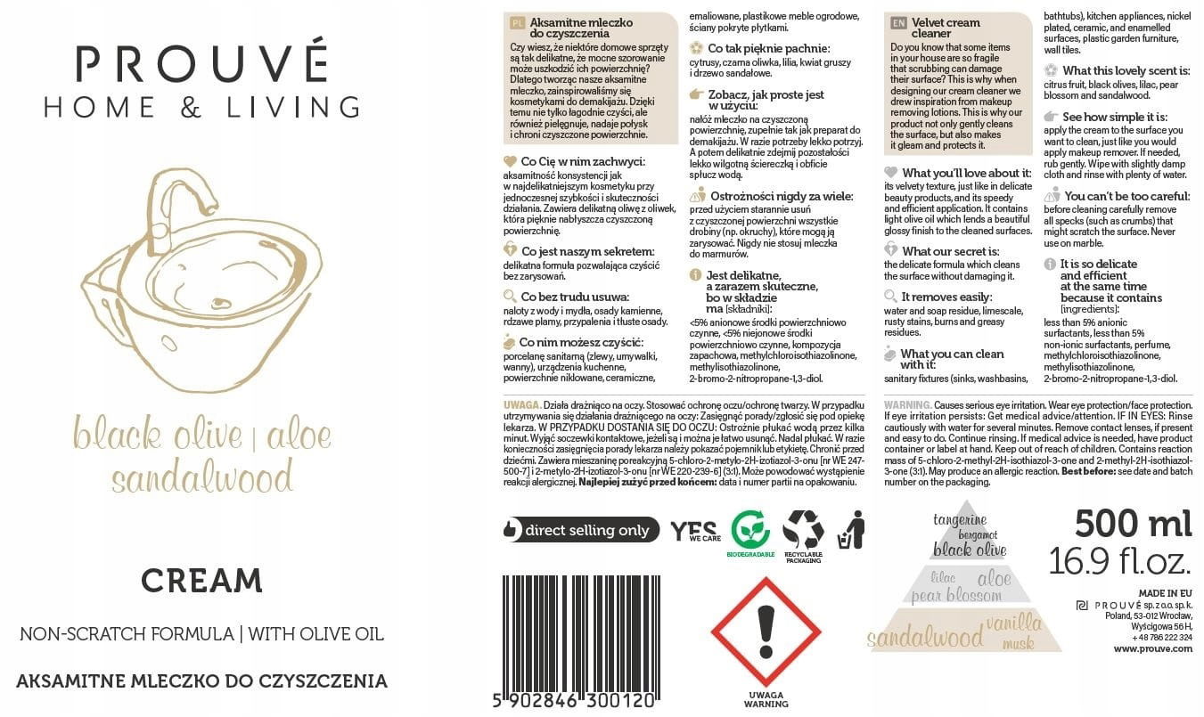 Mleczko do czyszczenia Prouve 0,5l Aksamitne Płytki Ceramika Emalia Meble