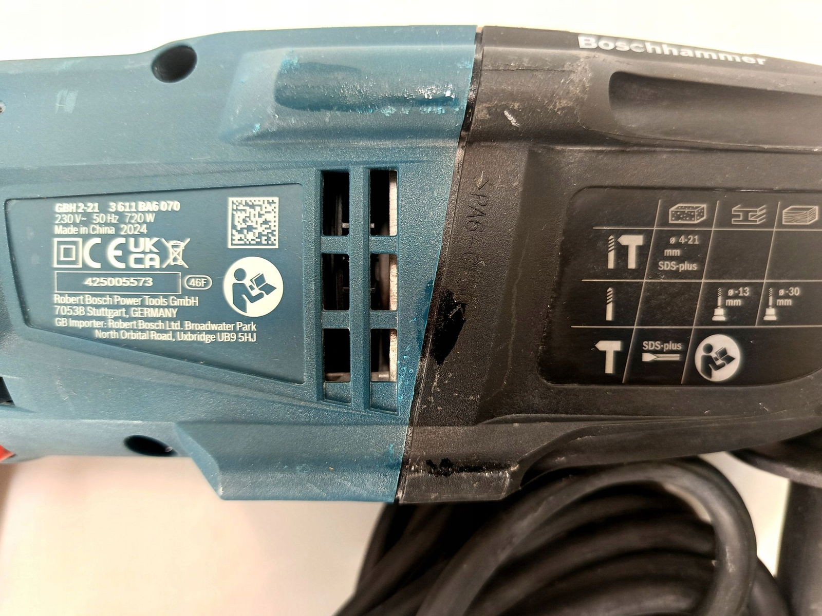 STAN PRODUKTU: UŻYWANY, WIDOCZNE ŚLADY UŻYTKOWANIA (RYSKI I PRZYBRUDZENIA). URZĄDZENIE JEST SPRAWNE TECHNICZNIE. ZDJĘCIA POGLĄDOWE (LOKALIZACJA RYS I ZABRUDZEŃ MOŻE SIĘ RÓŻNIĆ). BRAK OGRANICZNIKA GŁĘBOKOŚCI.