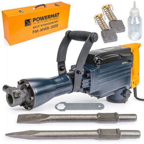 Do młota dołączamy dłuto i szpicak HEX 30mm, dzięki czemu możesz od razu po otrzymaniu towaru rozpocząć prace z urządzeniem.