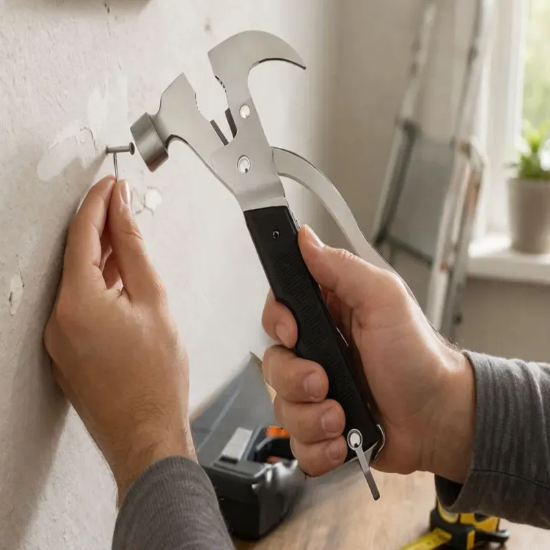 Praktyczny młotek 18w1 łączy w sobie wiele funkcji w jednym kompaktowym narzędziu. Idealny do codziennych napraw, prac domowych oraz zastosowań outdoorowych. To uniwersalne rozwiązanie, które zawsze warto mieć pod ręką.