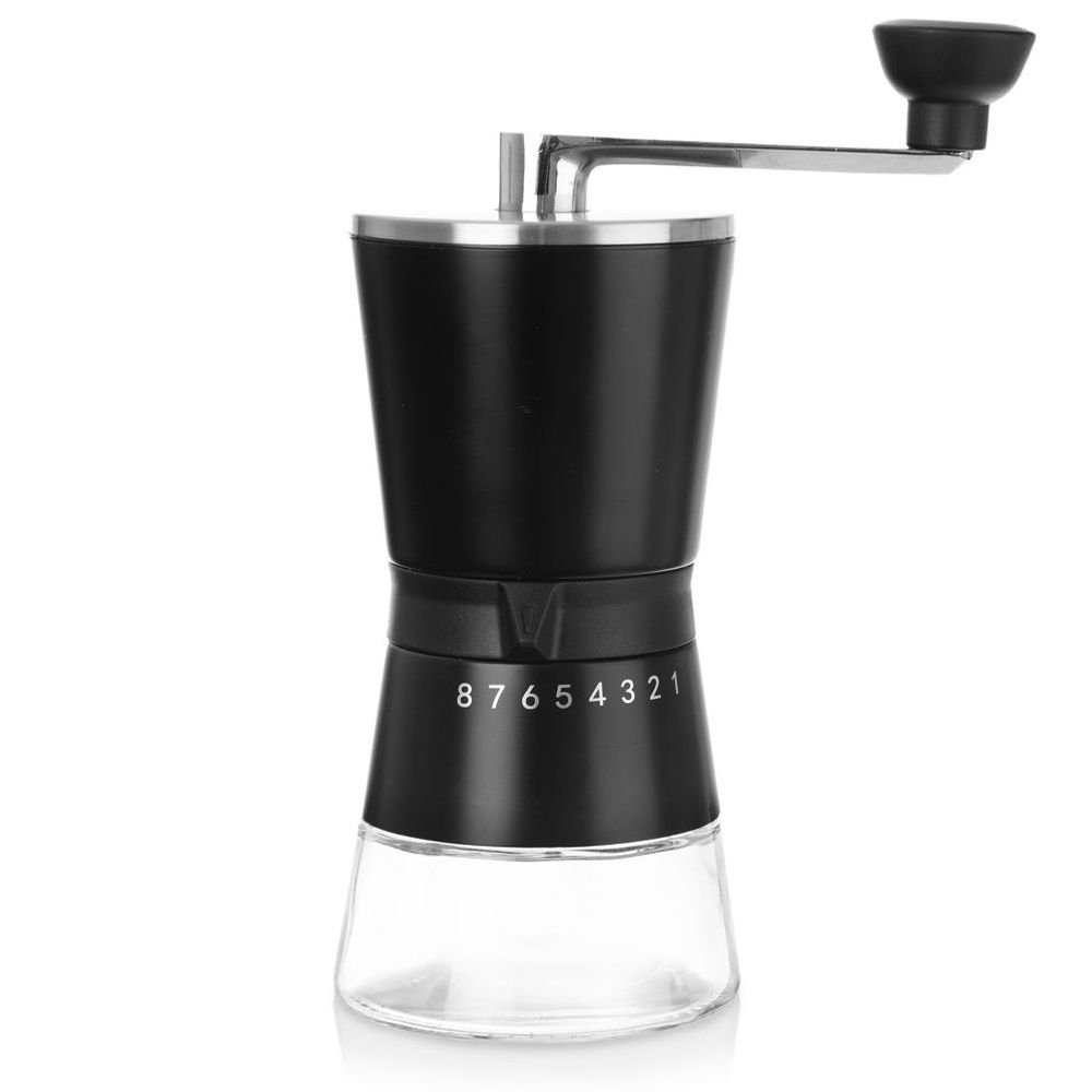 RĘCZNY - Tradycyjny młynek do ręcznego mielenia kawy z korbką oraz możliwością regulacji stopnia rozdrobnienia. Dzięki niemu w łatwy sposób zmielisz ziarna ulubionej kawy. Młynek ma wysokość 21 cm.