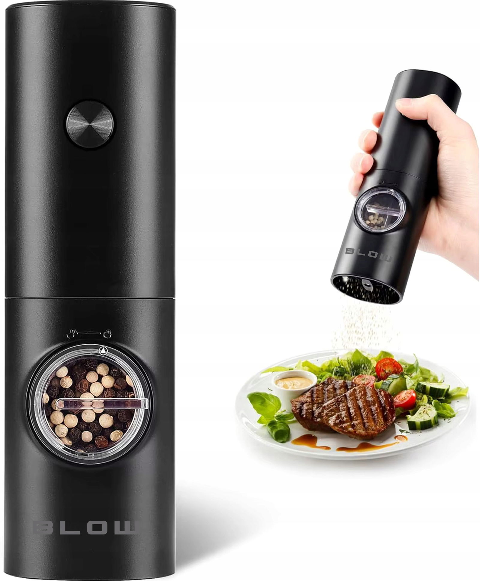 ELEKTRYCZNY MŁYNEK DO SOLI I PIEPRZU PRZYPRAW REGULACJA PODSTAWKA OKIENKO
