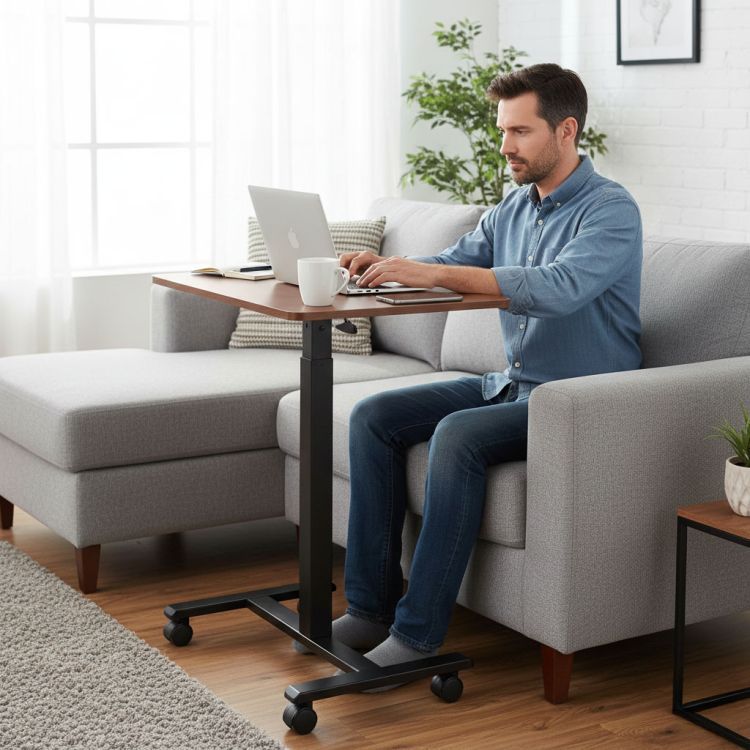 - Płynna regulacja wysokości umożliwia szybką zmianę pozycji z siedzącej na stojącą, co wspiera zdrową postawę i pozwala lepiej dostosować warunki do aktualnych potrzeb.