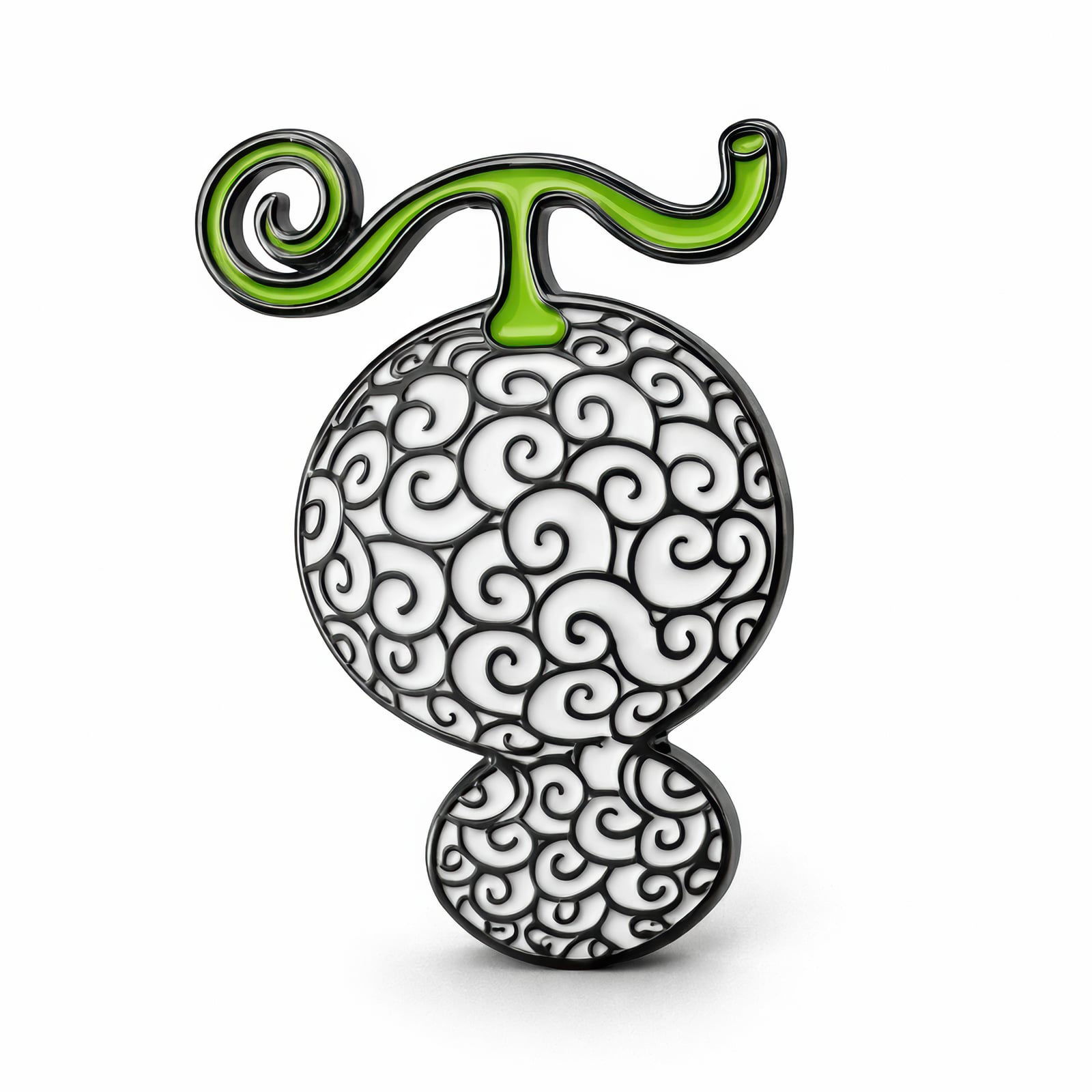 Niektórzy mówią, że jeden kęs wystarczy, aby zmienić swoje przeznaczenie. Ten 4‑centymetrowy pin, niezwykle szczegółowo wykonany, oddaje kształt Mochi Mochi no Mi, wykuwany z trwałego metalu o wyrazistym czarnym, fakturowanym wykończeniu oraz żywym, szmaragdowo‑zielonym łodygą. Wirujące wzory na powierzchni owocu przywołują potężny Haki Obserwacji Katakuri, sugerując unikalne zdolności zawarte w nim. Dodaj ten kultowy owoc diabła do swojej kolekcji One Piece lub podaruj go kolegom‑piratom.