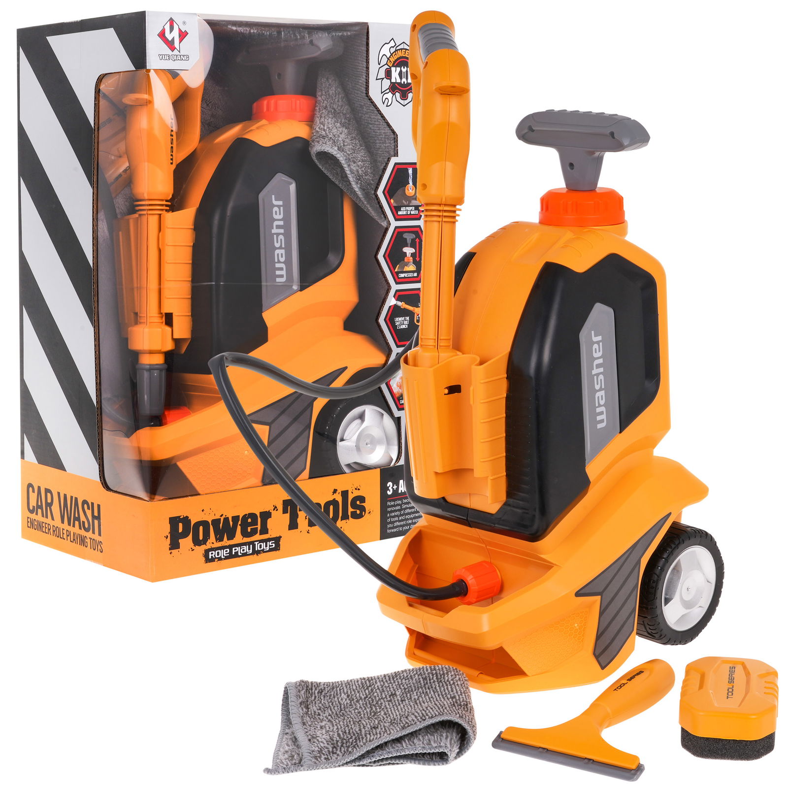 Zapomnij o męczącym ręcznym myciu zabawek! Przedstawiamy Myjkę Ciśnieniową z funkcją wody, idealną dla maluchów od 3 roku życia. Wystarczy napełnić zbiornik wodą, pociągnąć rączkę do góry i dół, a naciskać przycisk na pistolecie, by zaczęła się woda lać. Bez baterii! W komplecie znajdziesz ściągaczkę, gąbkę, ściereczkę i kluczyk do pistoletu. Produkt wykonany z najwyższej jakości materiałów, bez ostrych krawędzi, zapewniający bezpieczną zabawę. Odkryj nowy wymiar czystości!