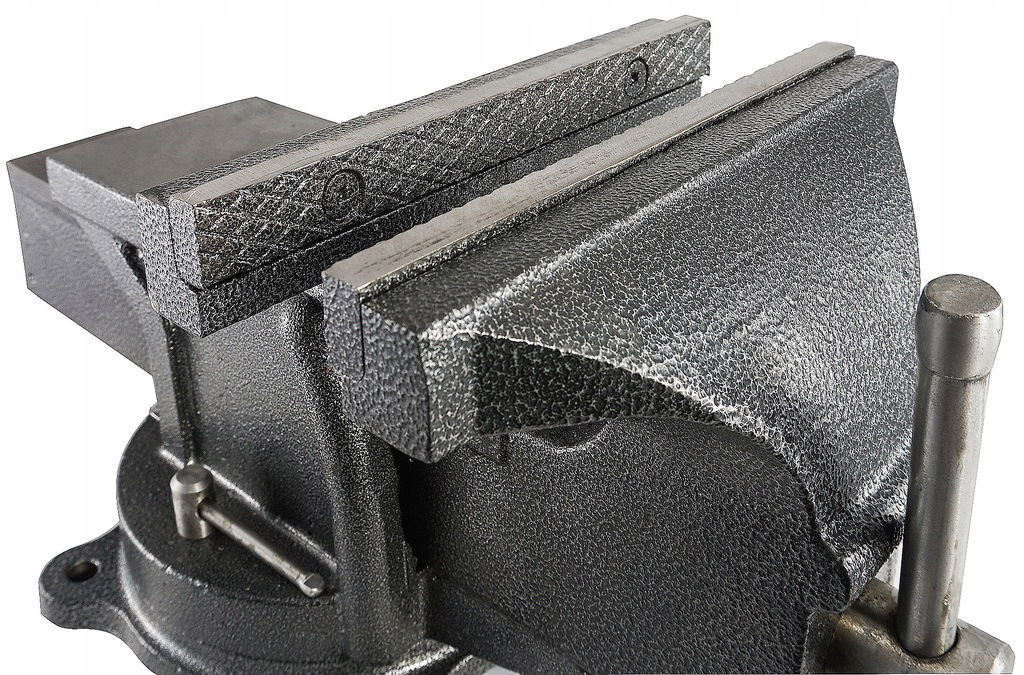Fabrycznie zabezpieczone olejem imadło wykonane jest z wysokiej jakości żeliwa, co w połączeniu z mocną prowadnicą i dodatkowymi otworami do montażu gwarantuje odpowiedni poziom stabilności podczas wykonywania pracy.
