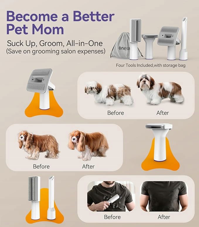 - Rozwiązanie problemu linienia u psów podczas sezonowej zmiany: Martwisz się chaosem spowodowanym masowym linieniem Twojego psa, gdy nadchodzi sezon linienia? Nie martw się, nasze odkurzacze dla psów mają moc ssania 10,00 kPa, mogą zebrać 99% sierści zwierząt domowych w uchwycie próżniowym, więc nigdy więcej nie musisz się martwić o włosy latające po całym domu.
