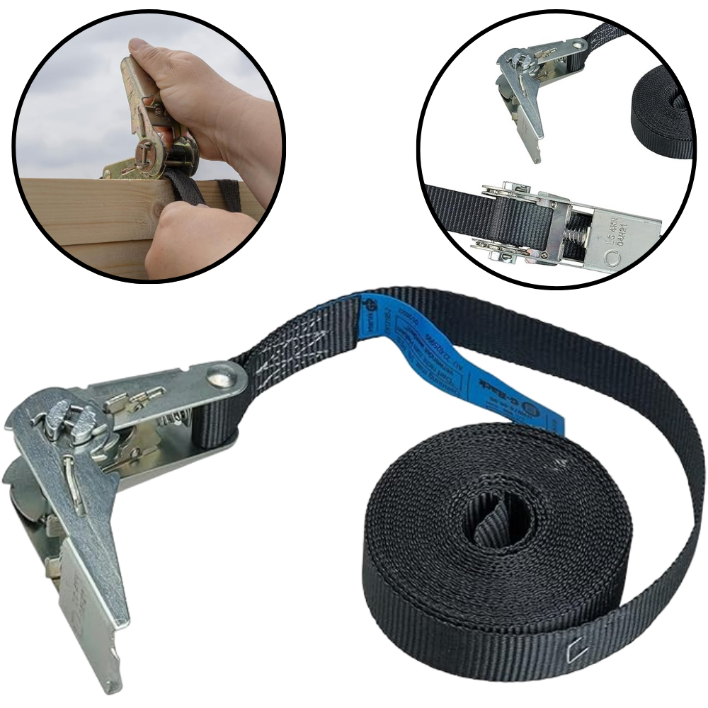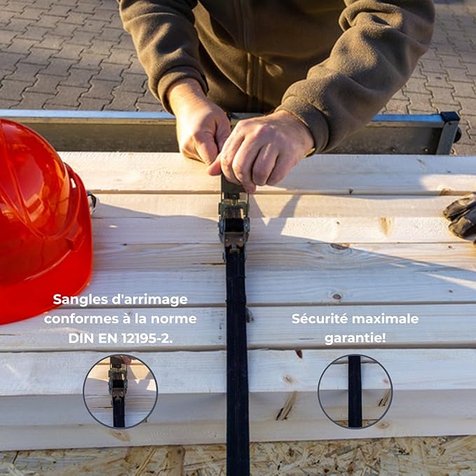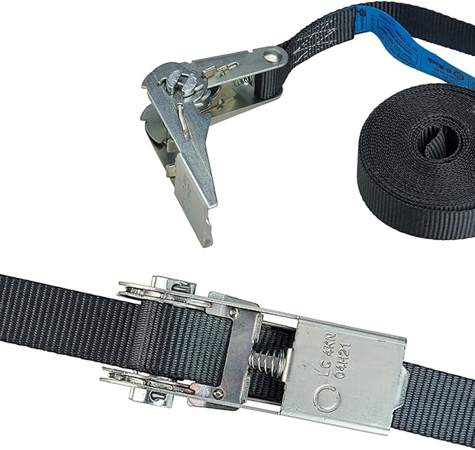 ✅ Norma DIN EN 12195-2 – spełniają europejskie normy bezpieczeństwa, a ich solidne, gęsto tkane taśmy oraz mechanizm zapadkowy gwarantują trwałość i stabilność.