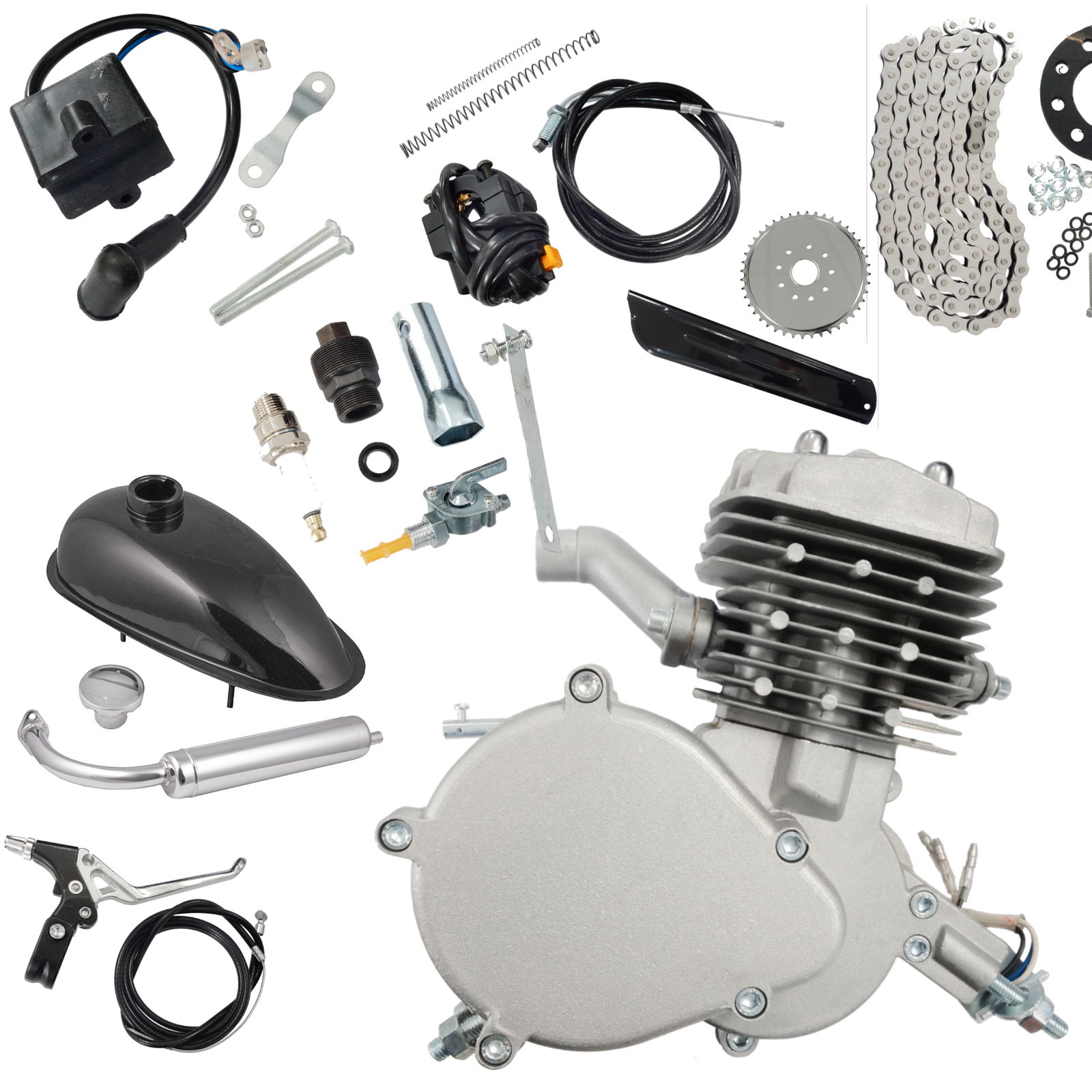 Mocny silnik do roweru 80 cm3 2T, zestaw do roweru spalinowego Moretti /// MorettiKod produktu: Kompletny zestaw silnika z akcesoriami do zamontowania w rowerze, który pozwali przekształcić każdy rower w pojazd spalinowy. W zestawie znajduje się: