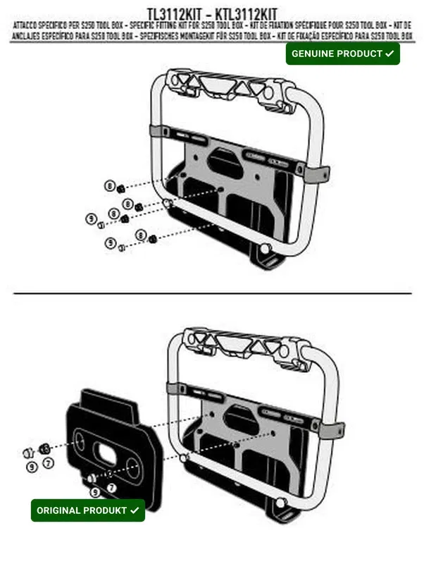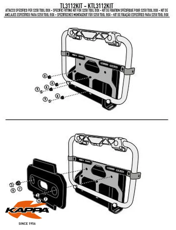 - Zestaw umożliwiający montaż skrzynki narzędziowej Kod producenta KS250 (Kappa) lub S250 (Givi).