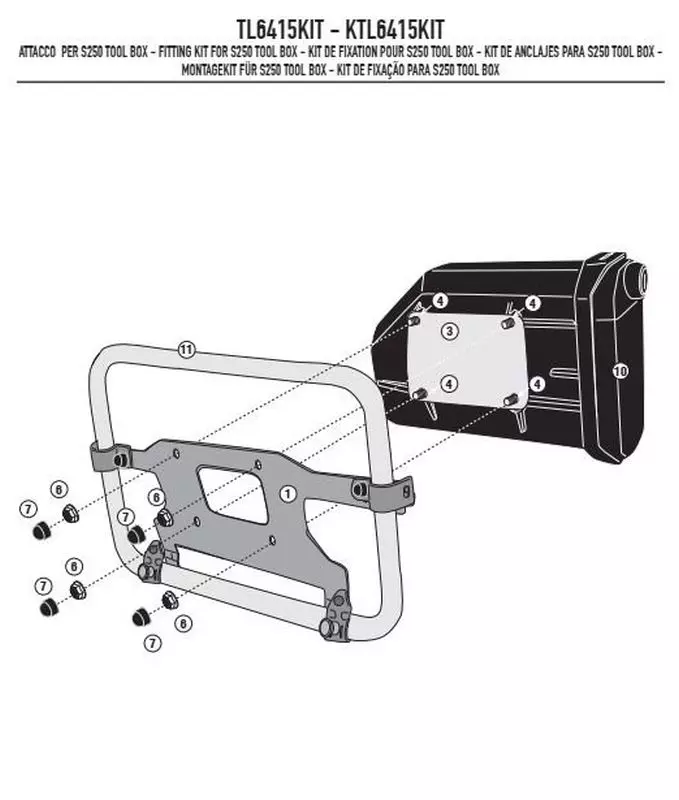 - uniwersalny Zestaw umożliwiający montaż skrzynki narzędziowej Kod producenta KS250 (Kappa) lub S250 (Givi).