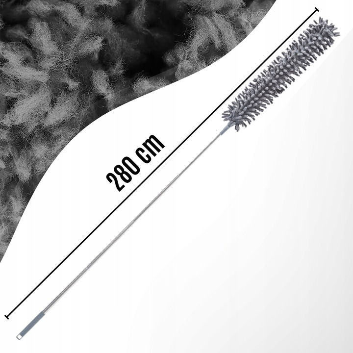 Dzięki imponującej długości aż 280 cm oraz wymiennym końcówkom, pozwala na dokładne czyszczenie nawet najbardziej niedostępnych zakamarków – bez użycia drabiny!