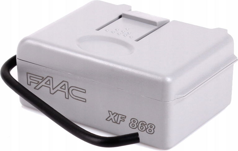 Moduł radioodbiornika FAAC XF868 przeznaczony do napędów FAAC z 3-pinowym złączem komunikacyjnym. W takie złącze wyposażone są min. wszystkie napędy D600, D700, D1000 oraz wszystkie nowe centrale sterujące takie jak E045, E145, E024, E124. Odbiornik nie pasuje do 5-cio pinowych złącz w starszych elektronikach.