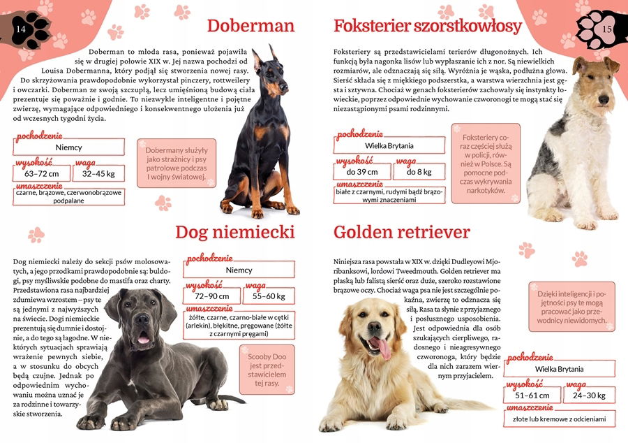 Pies to niezwykle inteligentne zwierzę. Ten wierny towarzysz jest najlepszym przyjacielem człowieka. Niniejszy album to nie tylko znakomita pomoc w wyborze idealnego pupila, lecz również doskonała pozycja dla osób chcących poszerzyć swoją wiedzę na temat tych wspaniałych czworonogów. Dzięki tej książce poznasz ponad 40 ras psów występujących na całym świecie. Wewnątrz czeka na Ciebie wiele barwnych fotografii, przydatnych informacji i zajmujących ciekawostek.