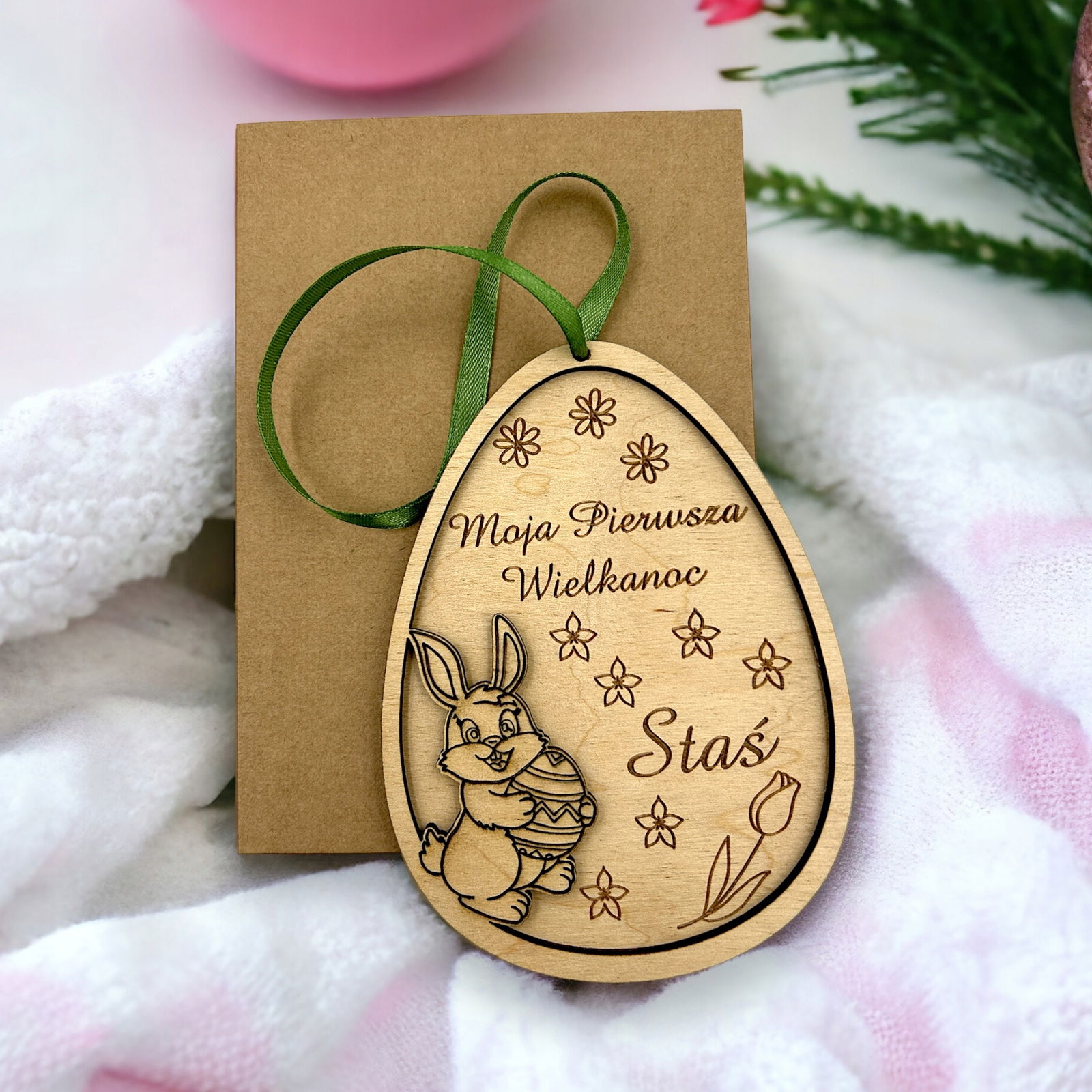 Oferujemy ozdobę wielkanocną, która będzie wspaniałą pamiątką na pierwsze Święta Wielkanocne dla dziecka. Ozdoba wykonana z wysokiej jakości sklejki.