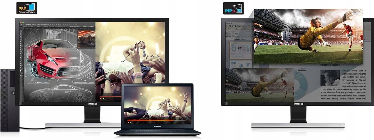 - Możliwość jednoczesnego wyświetlania obrazu z dwóch źródeł dzięki PiP i PbP
