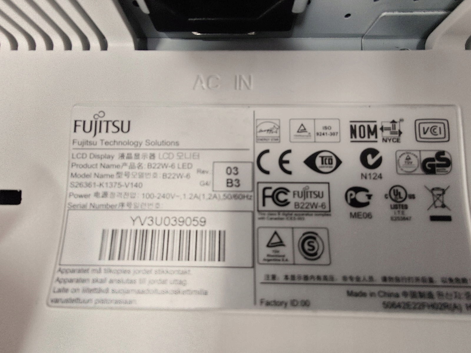 Monitor LED Fujitsu B22W-6 22" 1680x1050 DisplayPort, hub USB, klasa B