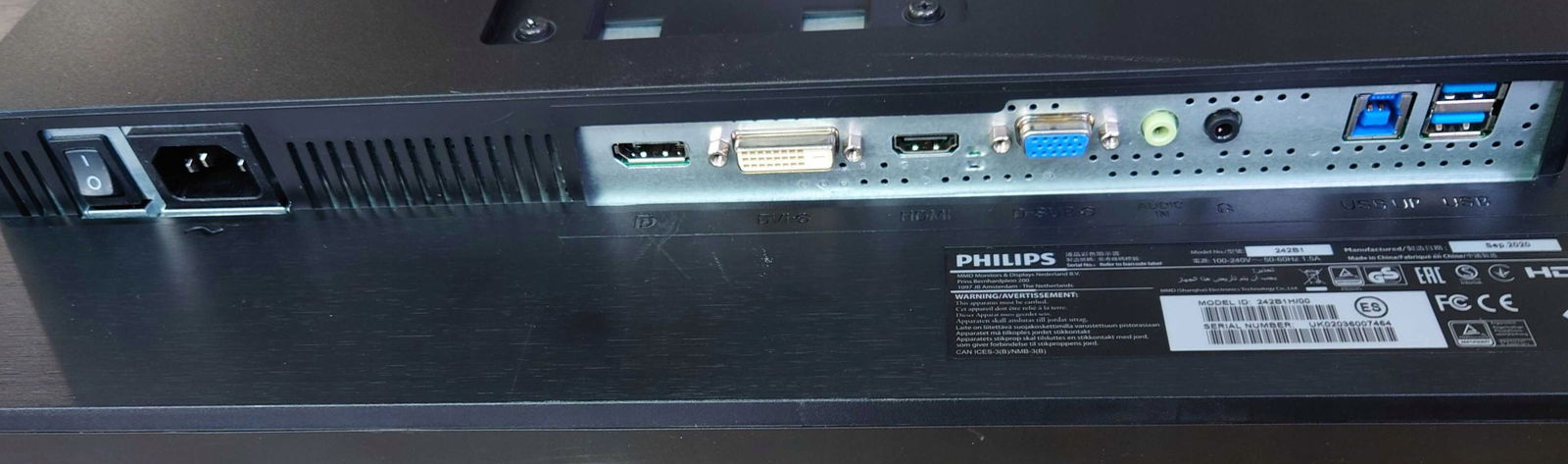 Monitor LED Philips 242B1H 23,8 " 1920 x 1080 px IPS / PLS, kamera, kable, klasa B (rysy które raczej nie będą przeszkadzały - foto)