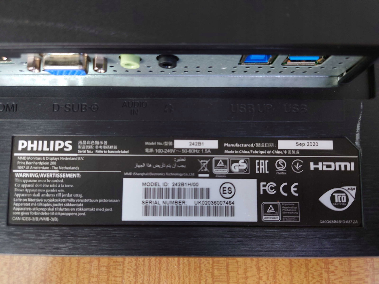 Monitor Philips 242B1H LED 23,8" FullHD IPS HDMI kamera kable klasa B foto