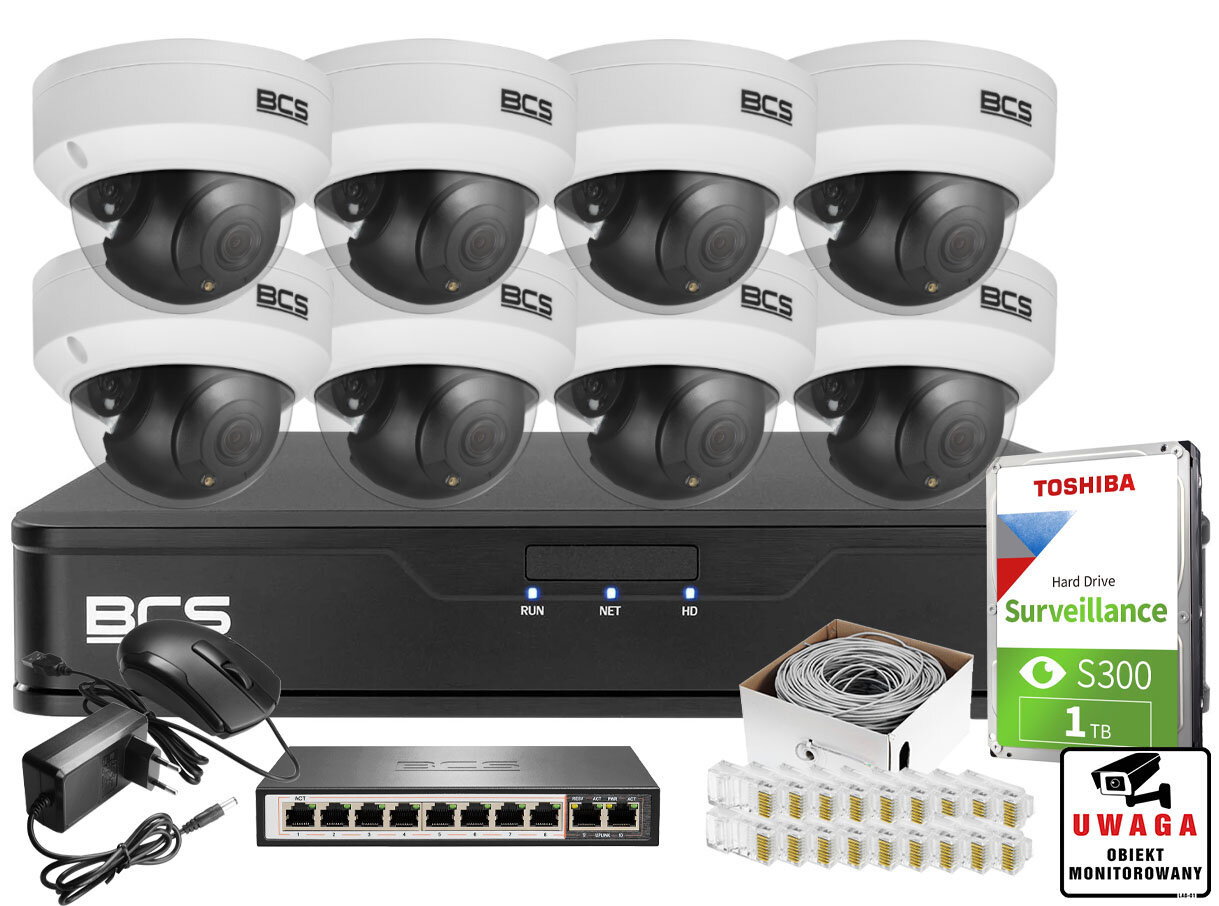 Monitoring firmy sklepu domu H.265+ BCS Point 8x Kamera BCS-P-DIP15FSR3 1TB