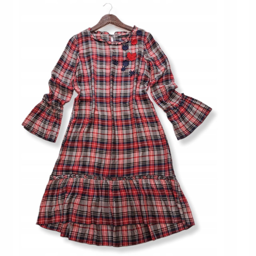 MONNARI prosta lejąca sukienka midi krateczka wiskoza falbana S/M