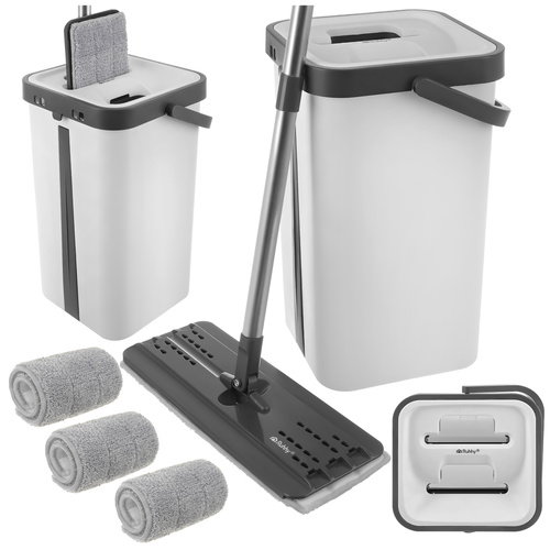 Mop płaski z wyciskaczem wiadro dwukomorowe woda czysta brudna 11L 3 wkłady