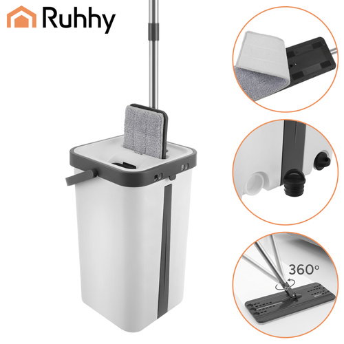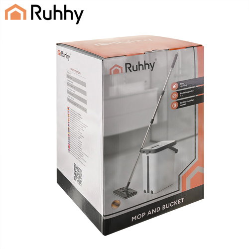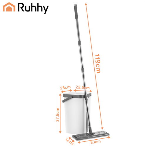 Mop z dużym dwukomorowym wiadrem 11L RUHHY z wyciskaczem i 3 chłonnymi nakładkami