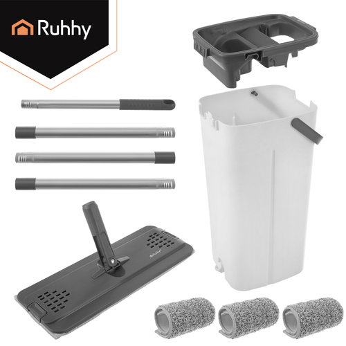 Mop z dużym dwukomorowym wiadrem 8,5L RUHHY z wyciskaczem i 3 chłonnymi nakładkami