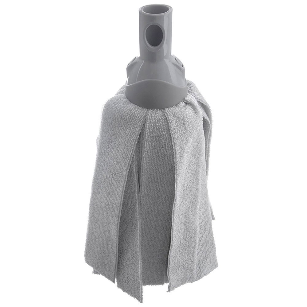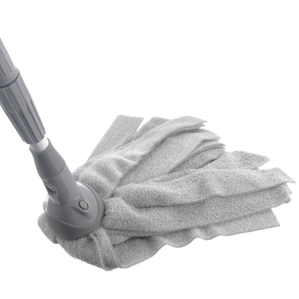 Chłonne frędzle - Płaskie frędzle skutecznie zbierają kurz, brud i nadmiar wody, ułatwiając sprzątanie i pozostawiając powierzchnie czyste. Wykonane z mikrofibry w szarym kolorze. Element mocujący mopa wykonany jest z tworzywa w szarym kolorze.