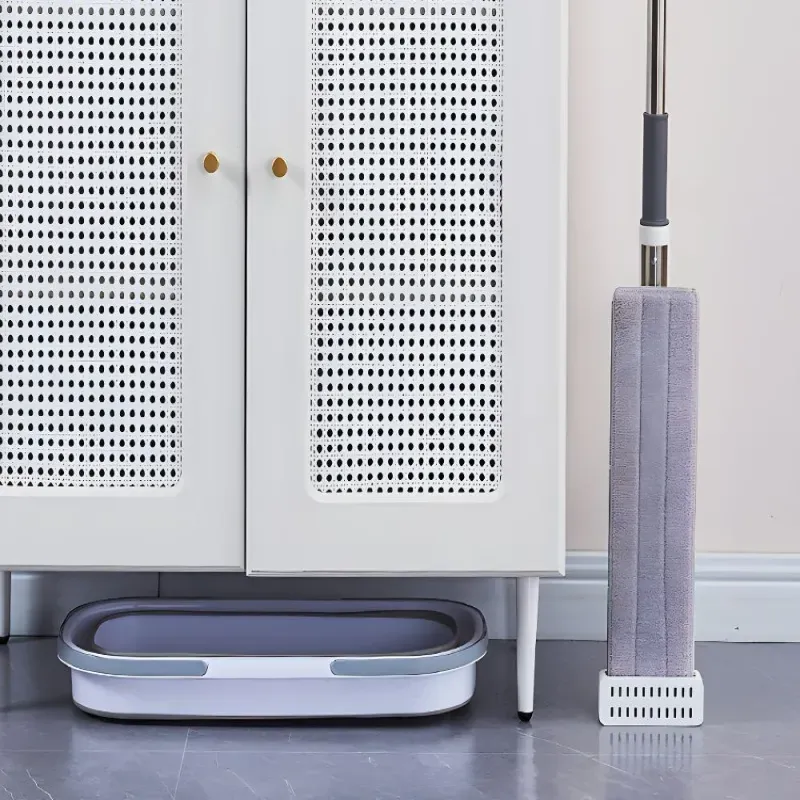 Praktyczny mop płaski ze ściągaczką i składanym wiadrem to idealne rozwiązanie do szybkiego i skutecznego sprzątania w domu. Doskonale sprawdza się na każdej powierzchni – od płytek i paneli po parkiety i gres.