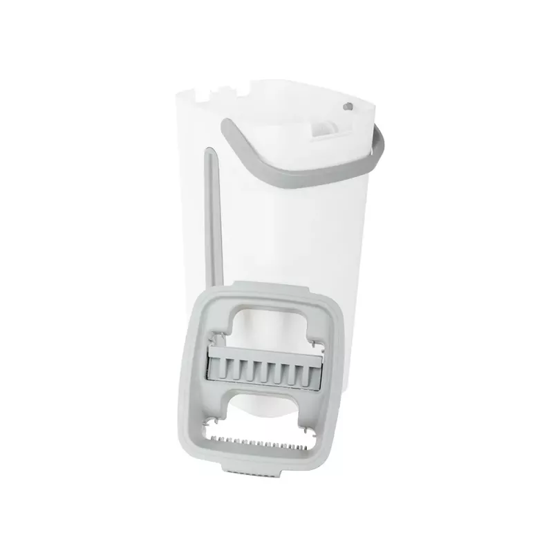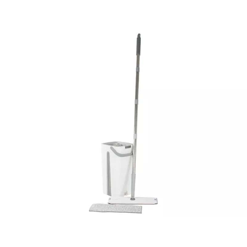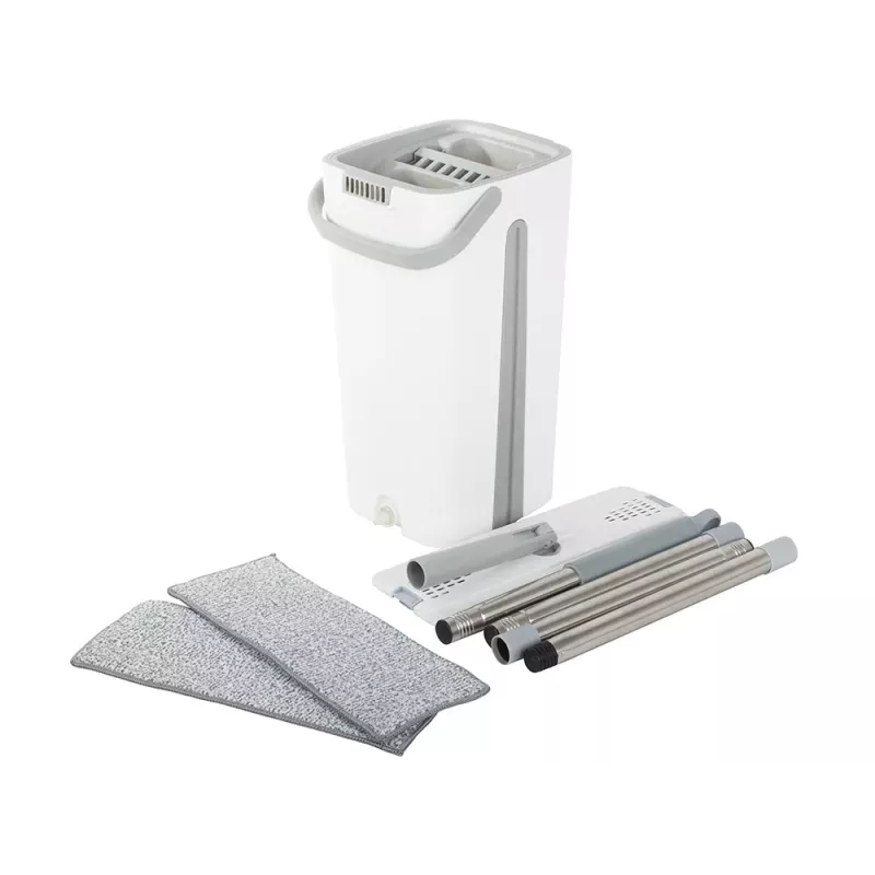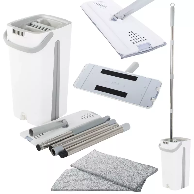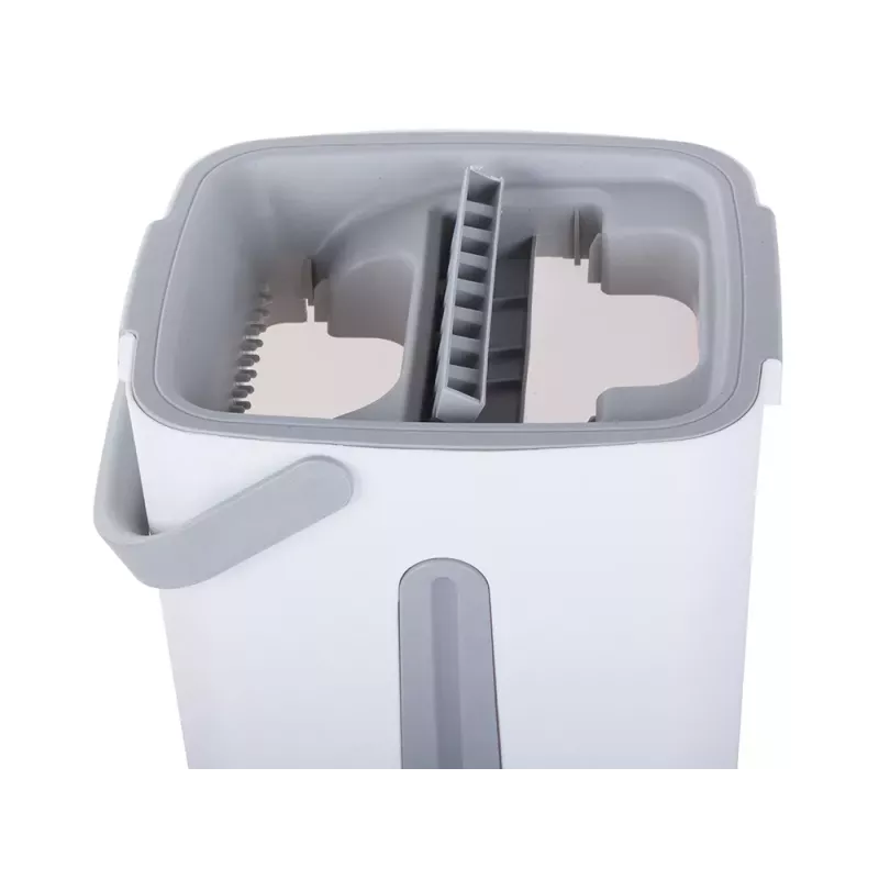 Mop wyposażony jest w dwukomorowe wiadro z wyciskaczem. Podczas płukania mopa, nieczystości pozostają w pojemniku z brudną wodą, natomiast podczas wyciskania w drugiej komorze, woda wpływa do komory na brudną wodę jednocześnie przepłukując go w czystej wodzie. Nawet jeśli sprzątanie, nie należy do Twoich ulubionych zajęć, z pewnością błyskawicznie polubisz ten innowacyjny sprzęt czyszczący.