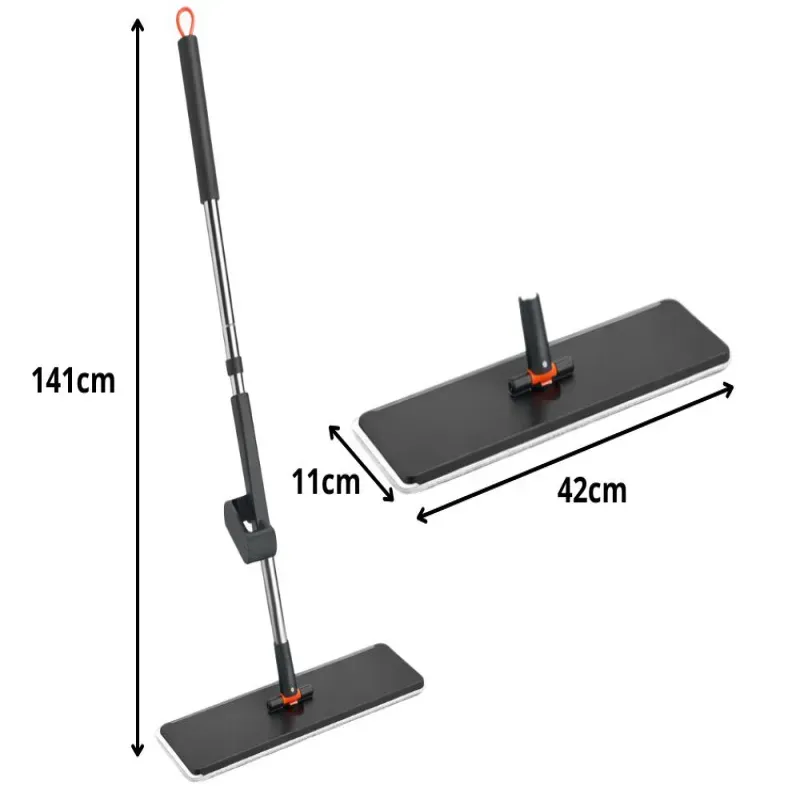 Mop płaski z nakładką z mikrofibry doskonale usuwa zabrudzenia, kurz i wodę z różnych powierzchni. Idealnie sprawdzi się do paneli, płytek, parkietu oraz innych podłóg. Pozwala utrzymać czystość bez smug i zacieków.