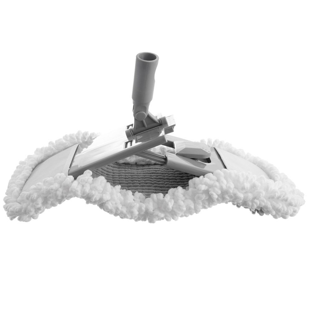 Płaska powierzchnia myjąca - Płaski mop skutecznie zbiera kurz, brud i nadmiar wody, ułatwiając sprzątanie i pozostawiając powierzchnie czyste. Powierzchnia mopa ma frędzle, które pozwolą lepiej usunąć brud. Wykonany z mikrofibry w białym kolorze. Element mocujący mopa wykonany jest z tworzywa w szarym kolorze.