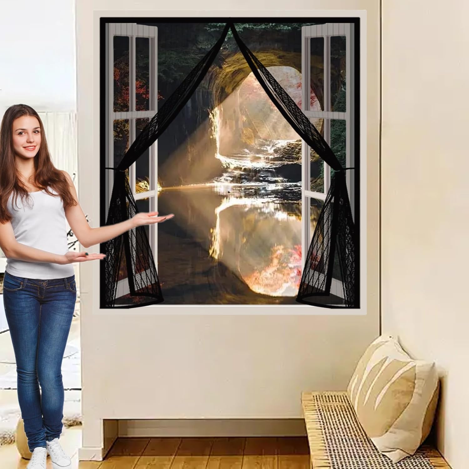 Materiał wykonania jest trwały i przewiewny, co zapewnia komfortowy przepływ powietrza w ciepłe dni, jednocześnie skutecznie blokując komary, muchy i inne niepożądane owady. Siatka jest również przyjazna dla rodzin z dziećmi oraz domowych zwierząt — koty i psy mogą bezpiecznie przechodzić, a magnesy zapewniają sprawne zamknięcie po każdym przejściu.