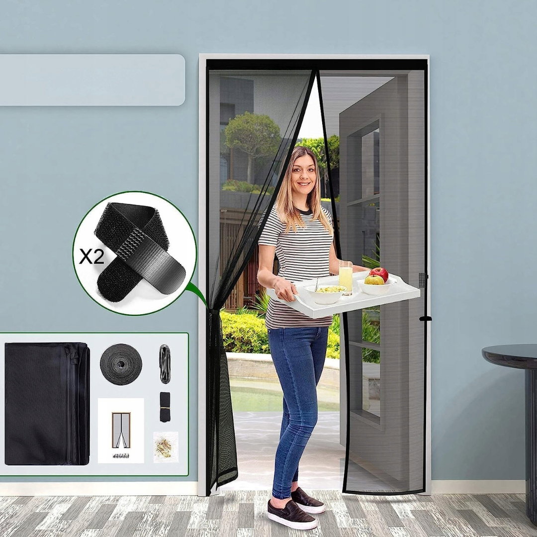 - Zastosowanie: moskitiera służy do ochrony pomieszczeń przed owadami, takimi jak muchy czy komary, przy jednoczesnym zapewnieniu swobodnego przepływu powietrza. Może być stosowana na drzwiach balkonowych, tarasowych oraz piwnicznych, bez potrzeby wiercenia. Produkt pozwala na wygodne użytkowanie dzięki magnetycznemu zamknięciu i łatwemu montażowi na rzep.