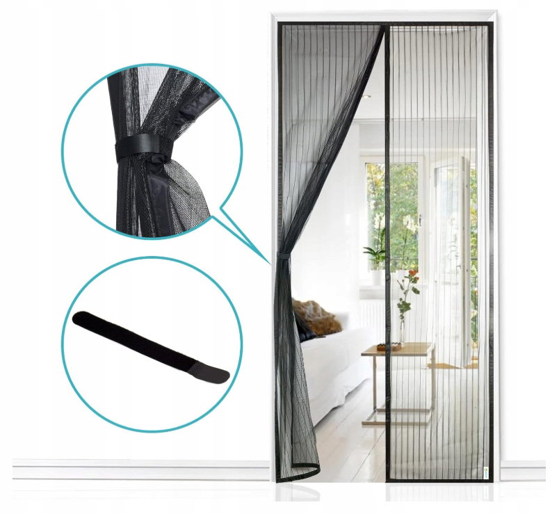 Moskitiera magnetyczna do drzwi Apalus 90 x 205 cm czarna POWYSTAWOWY