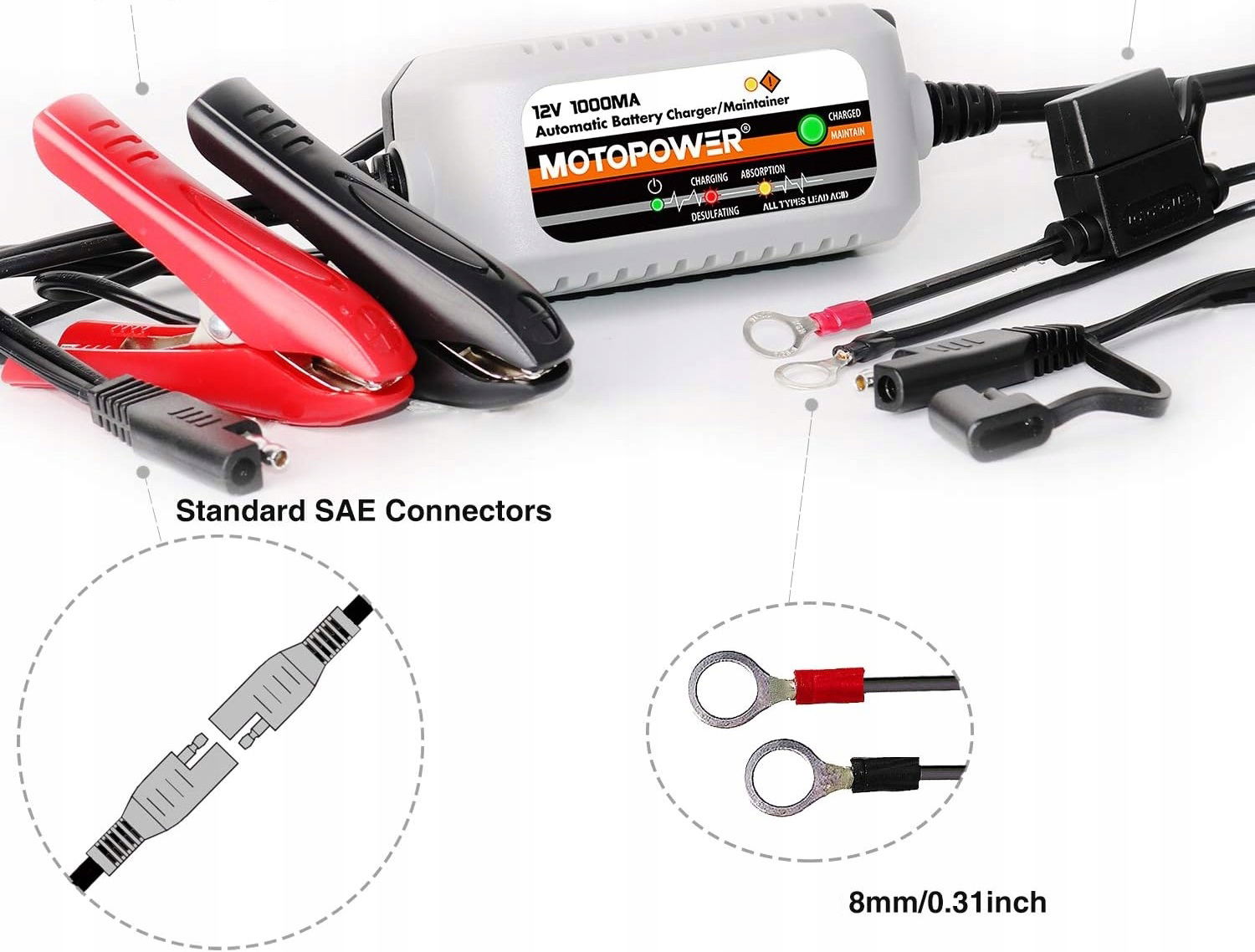 - 【Uprząż SAE Quick Release】 – Standardowy kabel 18AWG UL o długości do 2,5 m z opcjami przyłączy SAE Quick Release: 7,5 A bezpiecznikowa wiązka przewodów z zaciskiem pierścieniowym i w pełni izolowana, ulepszona wiązka kabli z zaciskami aligatora 50 A. Współpracuje ze wszystkimi urządzeniami ze standardowymi złączami SAE.