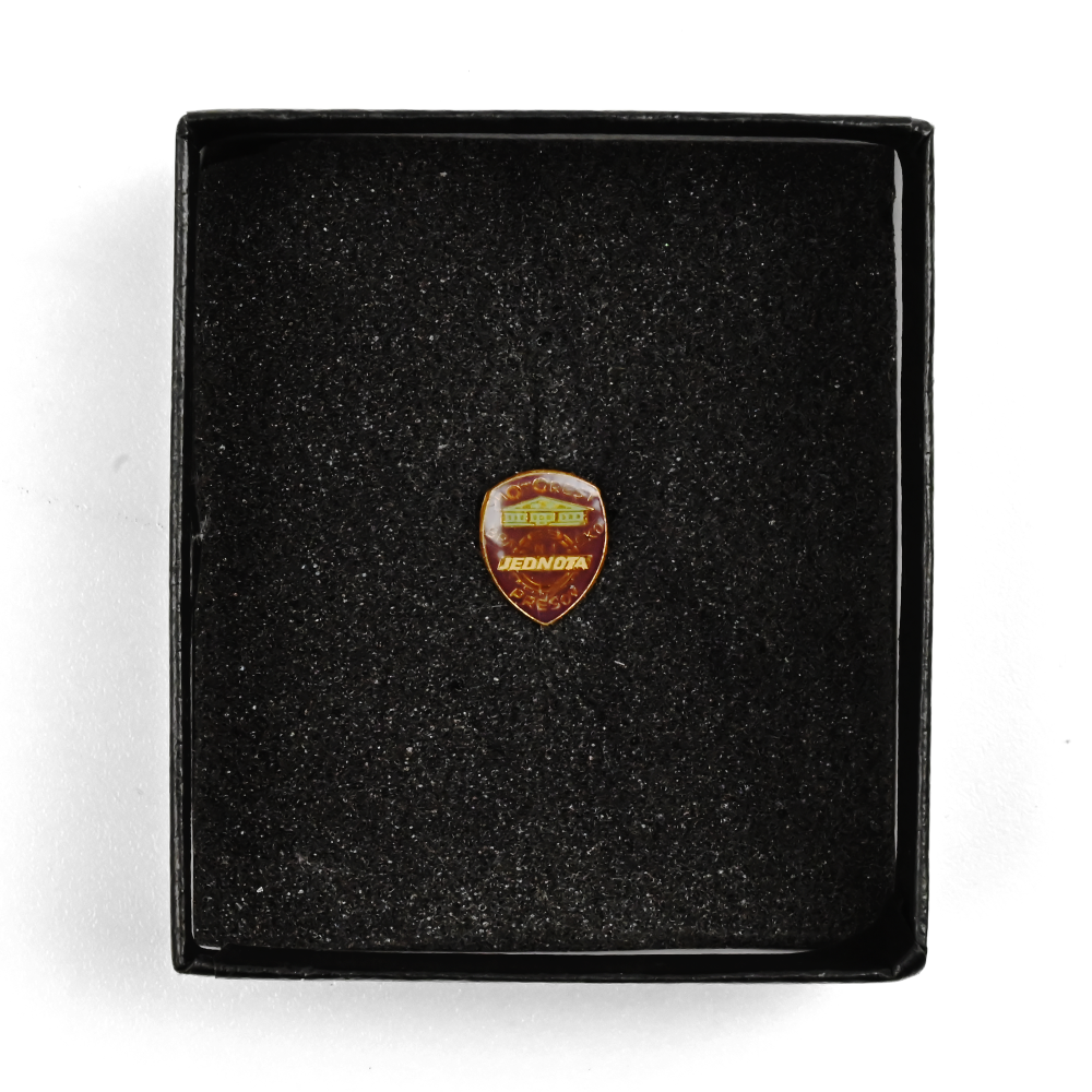 Przenieś się w przeszłość z autentyczną vintage’ową przypinką emaliowaną z czasów socjalistycznej Czechosłowacji! Ten unikalny artefakt upamiętnia Motorest Prešov, popularny przydrożny zajazd, oraz Jednota, państwową sieć handlową, która odgrywała kluczową rolę w codziennym życiu mieszkańców regionu.