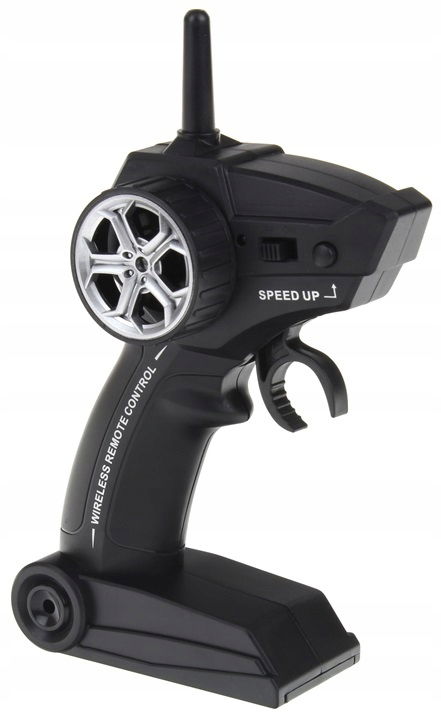 - Zasilanie: motorówka: akumulator 3,7 V (w zestawie); pilot: 2 baterie AA (brak w zestawie)