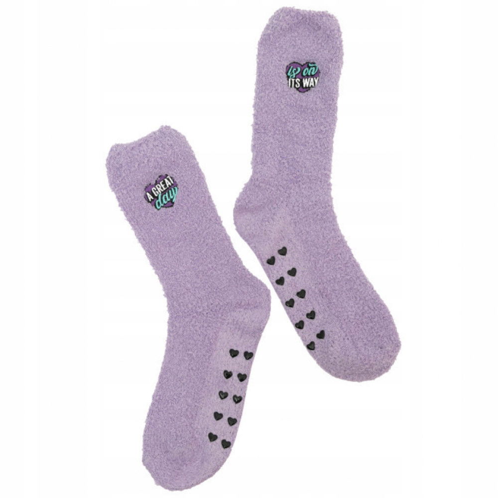 • Napis na dwóch skarpetkach – tekst widoczny po złożeniu pary